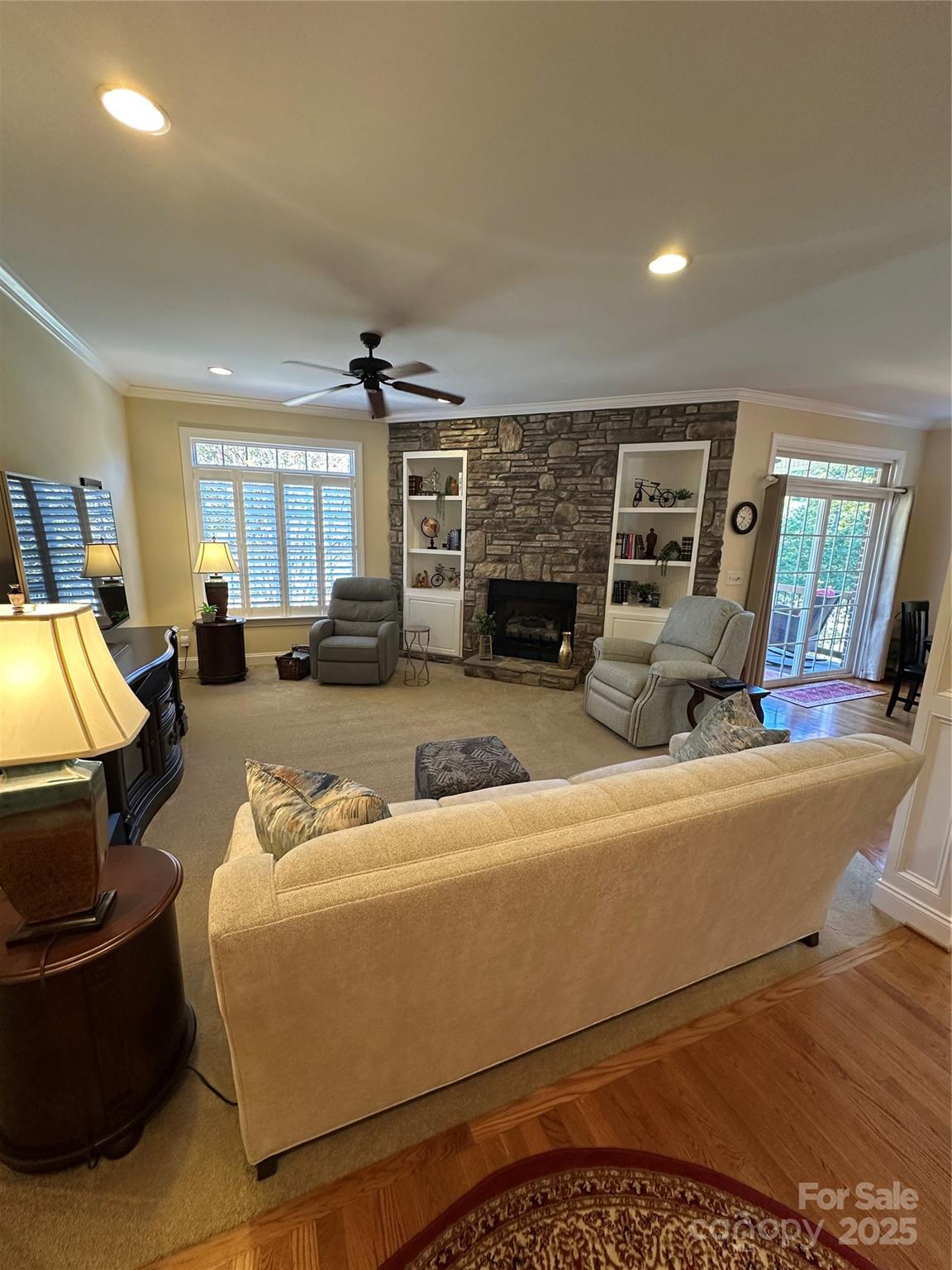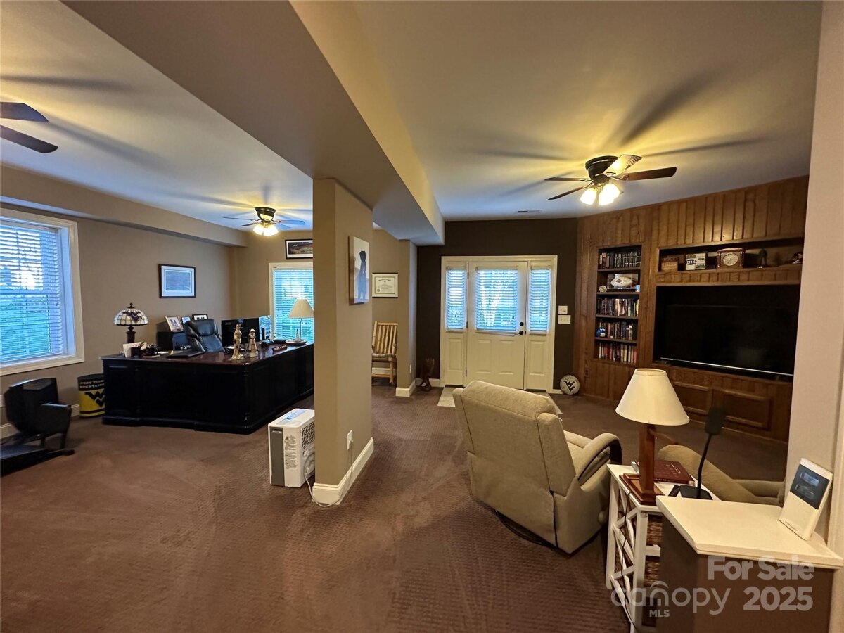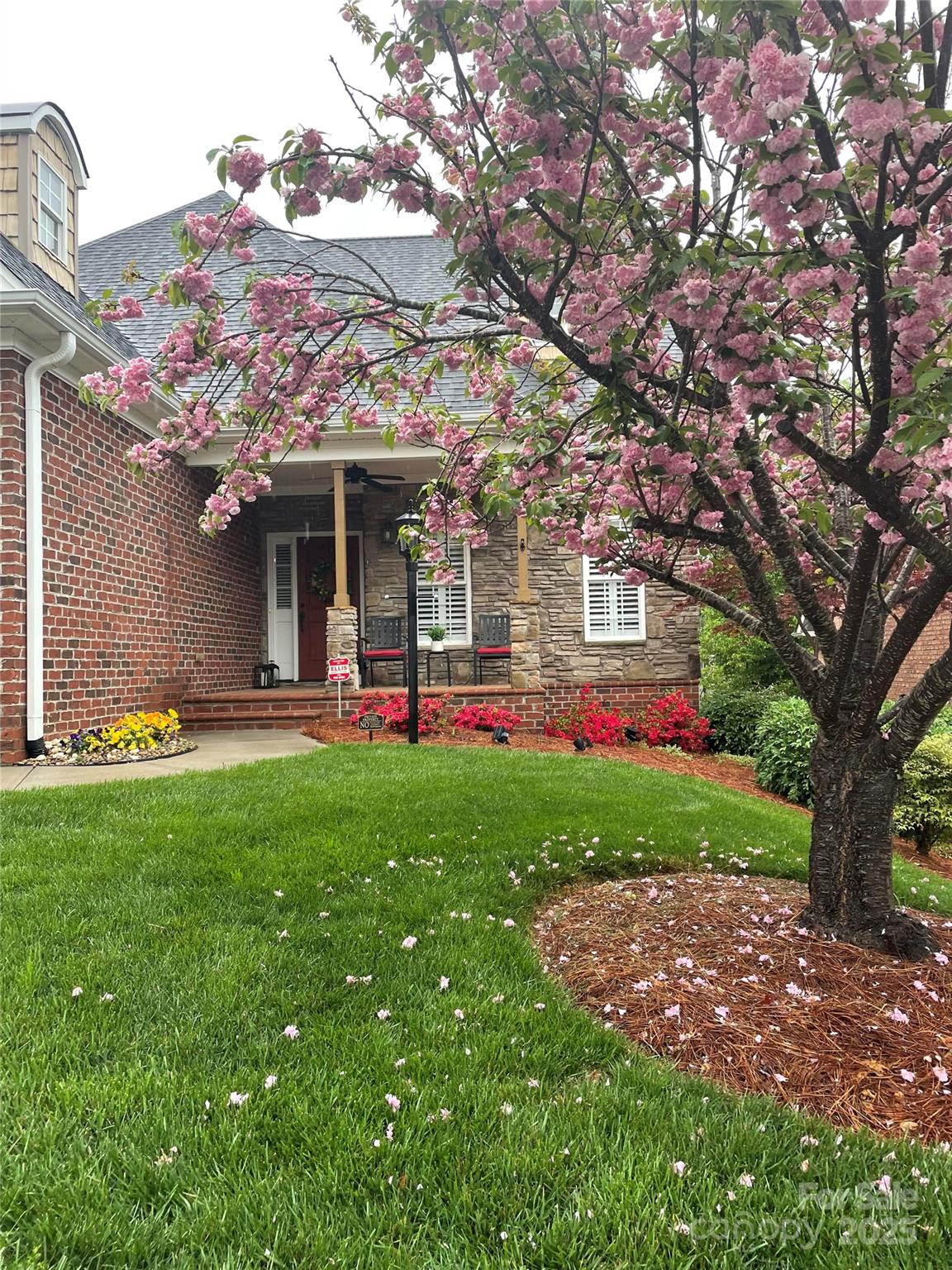 Stunning custom-built home meticulously maintained with lots of upgrades & quality craftsmanship. 3 beds, 3 1/2 baths, maple cabinets in kitchen, baths, laundry & garage. Granite tops, cozy sitting/office area upstairs, cultured stone fireplace & wall with built-ins in living room, lower level den has wall with TV area & built-ins. Lower level has wet bar with upper & lower cabinets, granite top. Entire lower level is heated & cooled. Primary bath features dual vanities, jetted tub, separate shower, cathedral ceiling with fan, tile floor & tub surround. Beautiful neighborhood pool view from the rear covered porch made with Brazilian hardwood floors, cedar post and black aluminum pickets. Front porch is accented with beautiful stone wall and stone and cedar post and ceiling fan. Lower level workshop includes utility sink, built-in cabinets. New roof (2023), new HP (2022 & 2022), new Hot Water heater (2023) and new primary bath shower (2022).