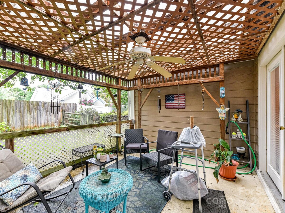 Charming 3-bedroom, 2-bath home featuring a comfortable living room with a cozy fireplace and a functional galley kitchen. The layout offers convenience and warmth, making it easy to enjoy everyday living. Step outside to a covered patio overlooking the fenced backyard—perfect for relaxing, entertaining, or letting pets play safely. This home combines indoor comfort with inviting outdoor spaces.