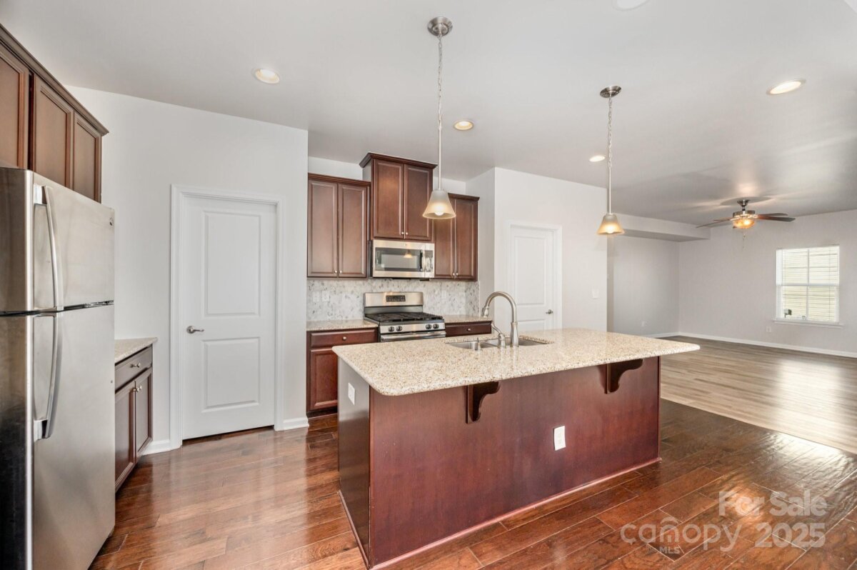 Move in ready and thoughtfully designed, this home features an open layout with three bedrooms, a flexible loft, and 2.5 baths. The two car garage adds everyday convenience, while the floor plan works equally well for daily living and entertaining. The kitchen is equipped with 42†cabinets, a large center island, granite countertops, tile backsplash, and stainless appliances including a gas range. The primary suite offers a walk-in closet, dual vanities, and a tiled shower. A bright breakfast area opens to the landscaped backyard perfect for relaxing or gathering with friends. Conveniently located near shopping, dining, and local amenities.