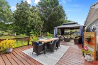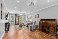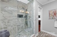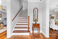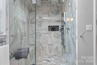 Welcome to Raeburn, one of South Charlotte’s most sought-after neighborhoods renowned for its tree-lined streets and community feel. This beautifully renovated home combines timeless craftsmanship with modern comfort, all while backing up to a permanently protected community green space with walking track, playground, and ball field. Step inside to find over $200,000 in thoughtful upgrades. The owner’s suite is a true retreat with solid oak flooring, custom closets, and a spa-inspired bathroom featuring Italian tile, a glass-enclosed walk-in shower with rain head, massage jets, bench, heated floors, and skylight. A second full bath offers a double vanity and new tile, while additional bedrooms feature crown molding, hardwoods, and custom built-ins. The heart of the home is a chef’s kitchen with ceiling-height cabinetry, soft-close storage, granite counters, a farmhouse sink, Bosch appliances, gas cooktop with convection oven, and a 3x6 island with pendant lighting—perfect for gatherings. The kitchen flows seamlessly into the family room with custom cabinetry, dining room with stone fireplace, and multiple living areas enhanced by crown molding, custom millwork, and upgraded LED lighting throughout. Outdoor living is unmatched: a 16x38’ deck with a 13x13’ gazebo (lighting, ceiling fan, and outlets) overlooks a private, fully fenced yard with mature peach and fig trees, raised garden beds, and solar lighting. The oversized two-car garage, expanded driveway, and concrete pad provide ample parking and storage. Behind the walls, major systems have been modernized for efficiency and peace of mind: upgraded 150-amp electrical, new wiring throughout main level, Westinghouse tankless water heater, new insulation, and a 2018 HVAC system with high-efficiency ductwork. Durable James Hardie siding completes the exterior. Every detail has been considered—from custom closet organizers and hardwood staircases to built-in media wiring and a hardwired security camera system. This is truly a move-in ready home designed for comfort, functionality, and long-term durability. Located minutes from Blakeney, Ballantyne, and Stonecrest, with top-ranked schools and abundant shopping, dining, and recreation at your fingertips, this property delivers the best of South Charlotte living.