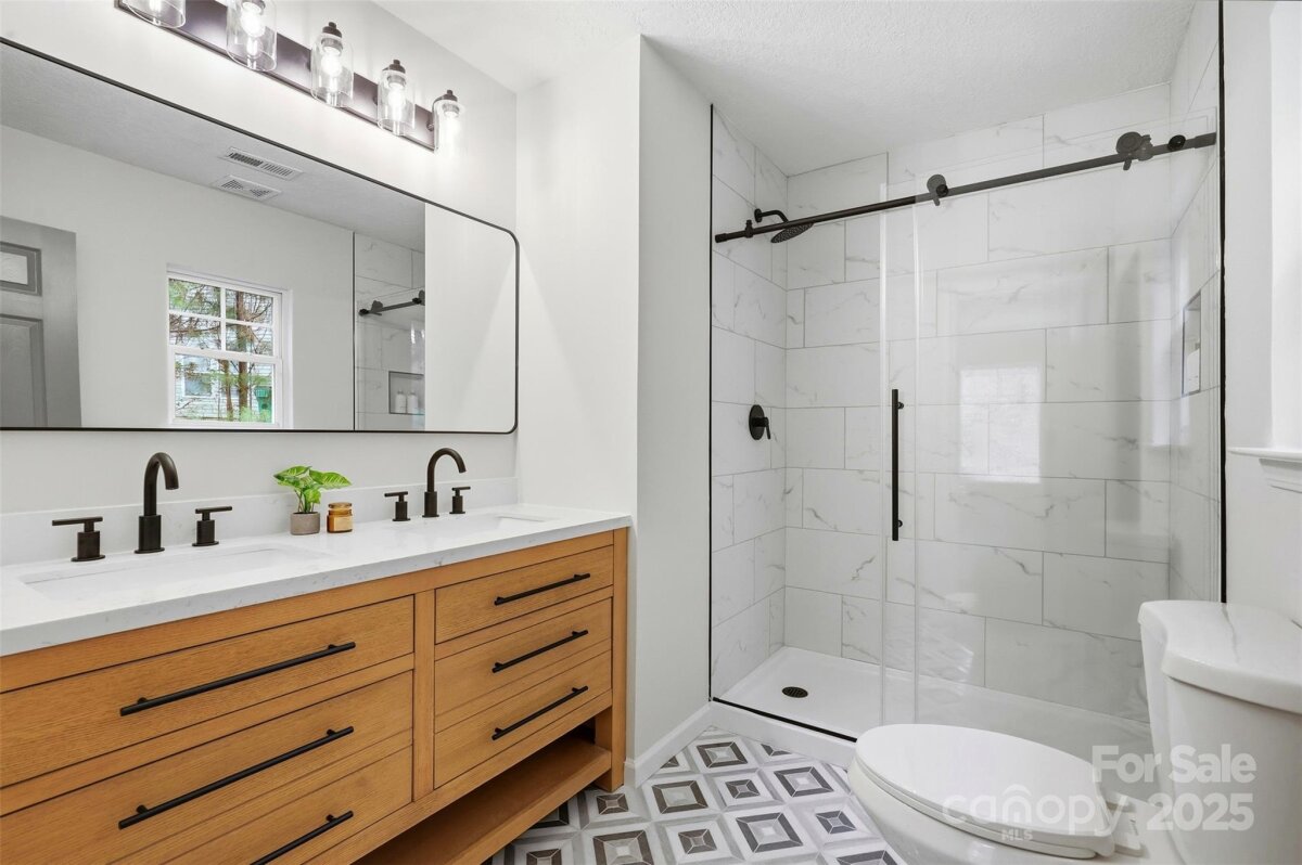 Renovated to perfection, this 3-bedroom, 2.5-bath home with a loft sits on a private cul-de-sac just 20 minutes from Uptown Charlotte— All for under $400K! Upon entry, you’re welcomed by a stunning two-story great room that makes the main living area feel spacious & bright. Cozy gas fireplace adds tons of character with a beautiful tile surround & wooden mantle. The upgraded kitchen features new cabinetry, quartz countertops, tile backsplash & stainless steel appliances. The space flows seamlessly into the dining area— A dream layout for entertaining! Additional upgrades include new LVP flooring, fresh paint, modern lighting & a moody color palette ready for your personal touch! The main-level primary suite is conveniently located off the kitchen & offers a gorgeous ensuite bath with an oversized tile shower, double-sink vanity & walk-in closet. Upstairs, a huge loft provides incredible flexibility-- Ideal for a kid’s playroom, game room, or home office; the options are endless! Two generously sized bedrooms share an upgraded full bath. Relax outdoors on the covered front porch or the rear concrete patio surrounded by mature trees for added privacy. With close proximity to I-485, commuting to the city has never been easier! Preferred lender incentive: A paid 1-0 rate buydown (1% lower rate for the first year) PLUS a no-cost refinance. Contact listing agent for details!