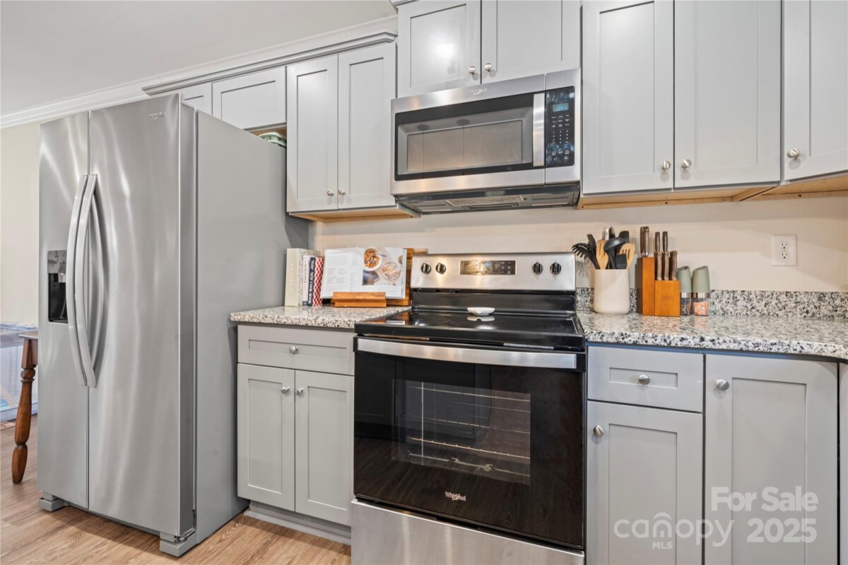 Come see this beautifully maintained three bedroom ranch home in York. You will love the open floor plan, with a bright and airy feel. This home offers a split plan; a large primary bedroom, with walk in closet and primary bath, plus 2 additional bedrooms on the other side of the home. Enjoy preparing meals in the chef's kitchen, with granite countertops, shaker-style kitchen cabinets and stainless steel appliances. This home has premium features like custom interior window trim, crown molding, craftsman style doors, recessed lighting, vinyl plank floor throughout, and more. Imagine relaxing on the large covered front porch or entertaining on the back deck in your private fenced backyard. Located in York, close to main street, shopping, restaurant's and more. Convenient to Clover, Lake Wylie, Rock Hill, Gastonia, Belmont and an easy drive to Charlotte. Move in ready for the next owners, don't miss out!