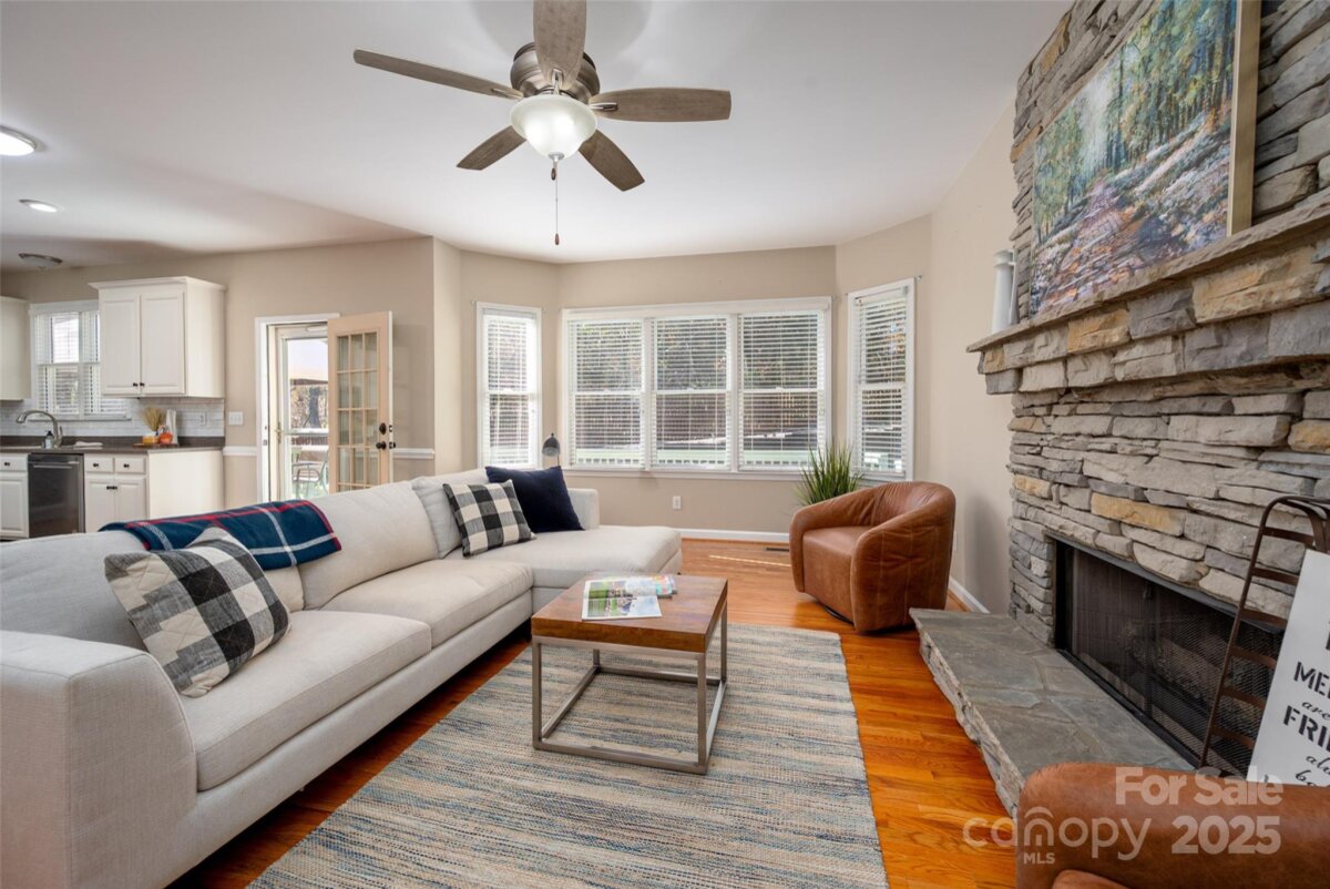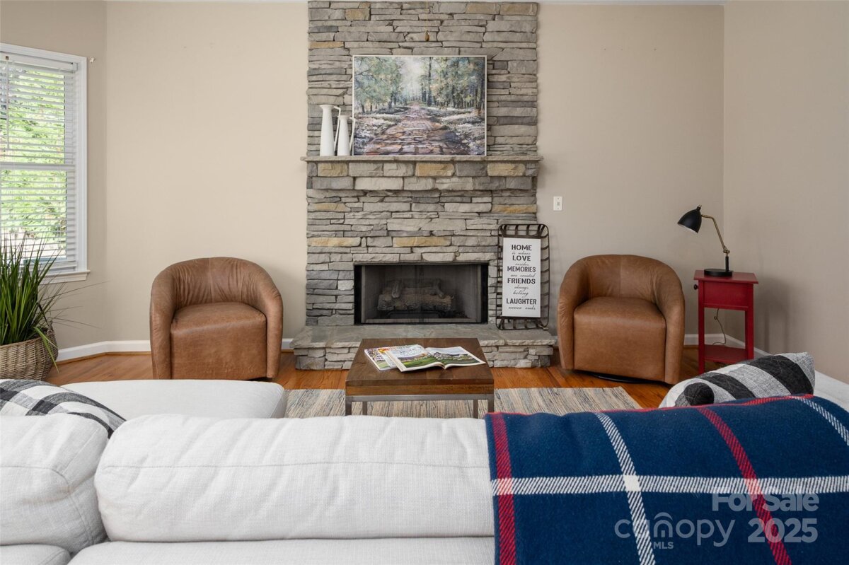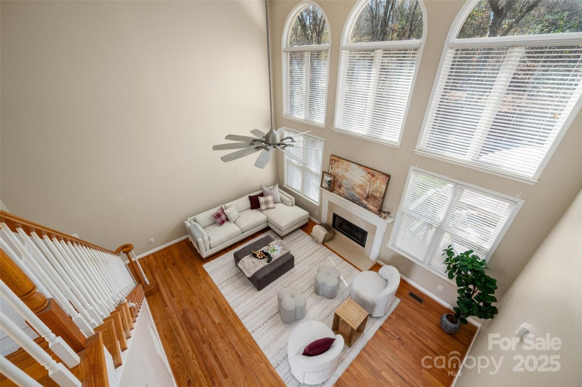 Welcome to this beautifully updated and well-maintained cul-de-sac home in Ballantyne Meadows—one of South Charlotte’s most sought-after neighborhoods. Enjoy nearby Stonecrest, The Bowl, Blakeney, and Waverly, plus top-rated schools and a peaceful, tree-lined setting. Inside, an inviting open floor plan features hardwoods throughout both levels. The stunning entry leads to a bright two-story great room with a new Verdian gas fireplace. The updated kitchen offers all-new stainless steel appliances —including a Whirlpool convection/air-fryer oven, Whirlpool french door refrigerator, dishwasher, and microwave—and opens to a cozy den with a custom stone gas fireplace and bay window overlooking the private, wooded backyard. The spacious primary suite includes a sitting area, dual vanities, garden tub, tile floor, and large walk-in closet. Additional bedrooms are generous and versatile—perfect for guests, office, or play space. Major updates include new HVAC systems (2021 & 12/2022), polyaspartic garage floor coating with 10-year warranty, new toilets, new powder room sink, new lighting, new modern ceiling fans, new. hardware throughout, Sprite filterable shower heads, fresh interior paint, and designer fixtures as well as LED recessed trim cans with night light feature. Washer and dryer remain with the home. Roof replaced 2017, crawlspace w/ vapor barrier, and Rainwater irrigation system serviced annually. Enjoy watching birds and deer from the large back deck! The private backyard offers a peaceful retreat with dense trees providing a natural buffer. It’s fully fenced, flat, and features French drains, mature trees, and a custom elevated stone-covered dog run—perfect for pets or play. The neighborhood playground is just up the street. Every detail has been thoughtfully maintained, making this home a rare find—immaculate, move-in ready, and easy to love!