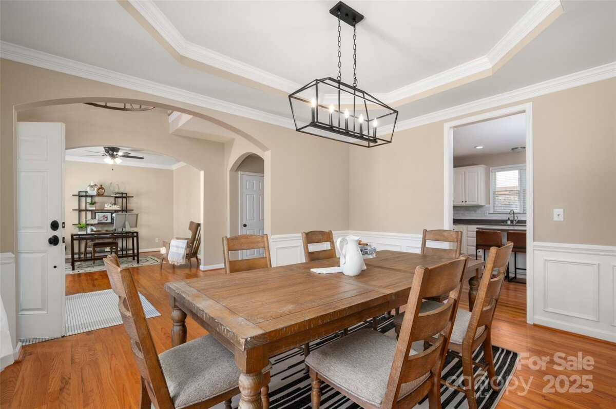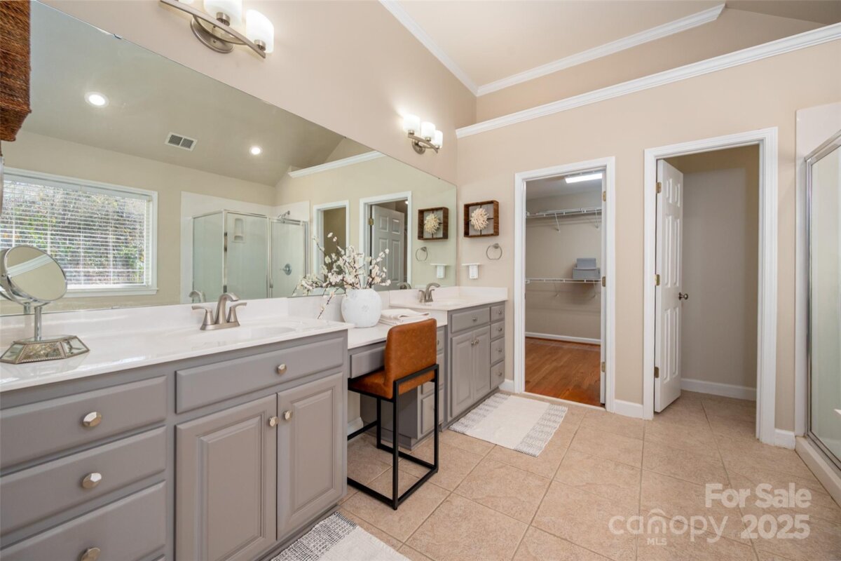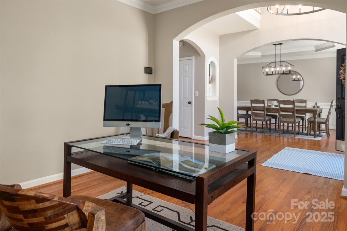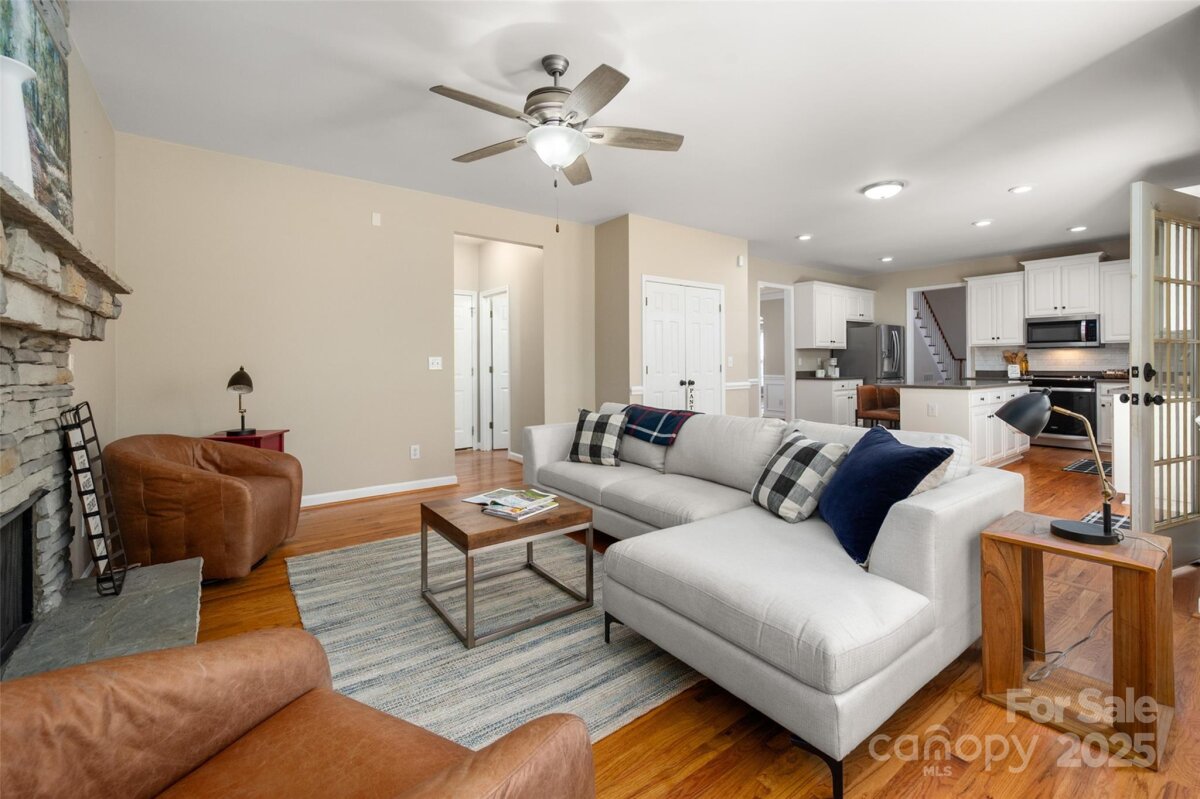 Welcome to this beautifully updated and well-maintained cul-de-sac home in Ballantyne Meadows—one of South Charlotte’s most sought-after neighborhoods. Enjoy nearby Stonecrest, The Bowl, Blakeney, and Waverly, plus top-rated schools and a peaceful, tree-lined setting. Inside, an inviting open floor plan features hardwoods throughout both levels. The stunning entry leads to a bright two-story great room with a new Verdian gas fireplace. The updated kitchen offers all-new stainless steel appliances —including a Whirlpool convection/air-fryer oven, Whirlpool french door refrigerator, dishwasher, and microwave—and opens to a cozy den with a custom stone gas fireplace and bay window overlooking the private, wooded backyard. The spacious primary suite includes a sitting area, dual vanities, garden tub, tile floor, and large walk-in closet. Additional bedrooms are generous and versatile—perfect for guests, office, or play space. Major updates include new HVAC systems (2021 & 12/2022), polyaspartic garage floor coating with 10-year warranty, new toilets, new powder room sink, new lighting, new modern ceiling fans, new. hardware throughout, Sprite filterable shower heads, fresh interior paint, and designer fixtures as well as LED recessed trim cans with night light feature. Washer and dryer remain with the home. Roof replaced 2017, crawlspace w/ vapor barrier, and Rainwater irrigation system serviced annually. Enjoy watching birds and deer from the large back deck! The private backyard offers a peaceful retreat with dense trees providing a natural buffer. It’s fully fenced, flat, and features French drains, mature trees, and a custom elevated stone-covered dog run—perfect for pets or play. The neighborhood playground is just up the street. Every detail has been thoughtfully maintained, making this home a rare find—immaculate, move-in ready, and easy to love!