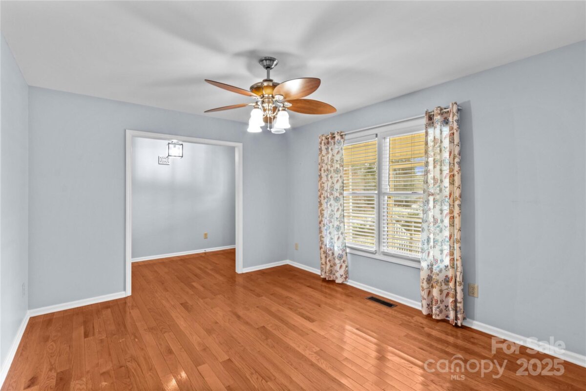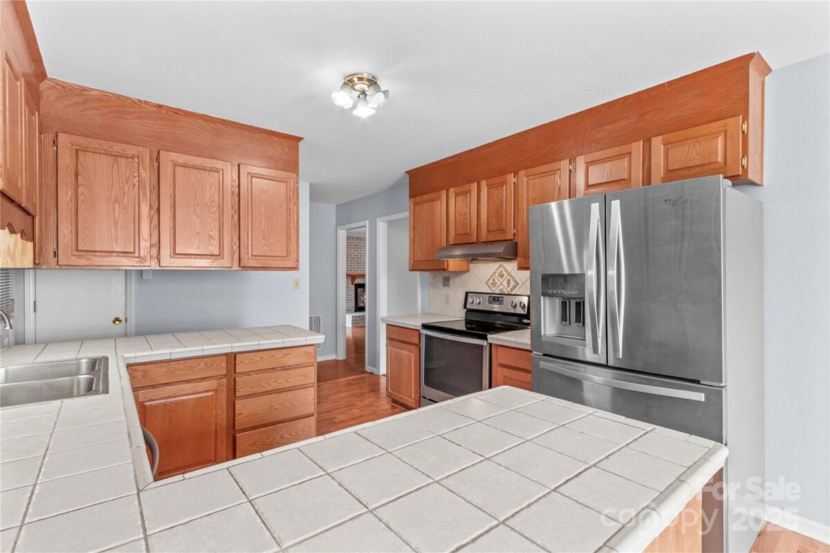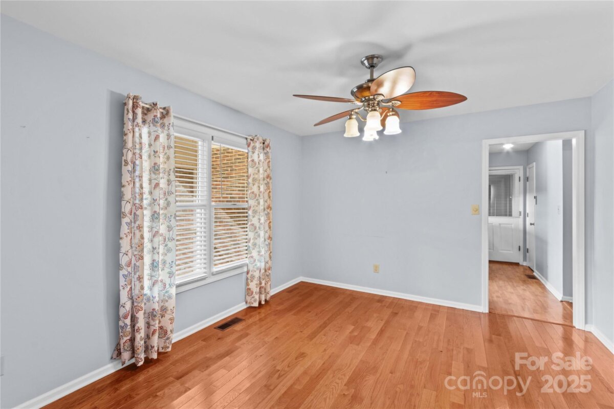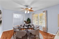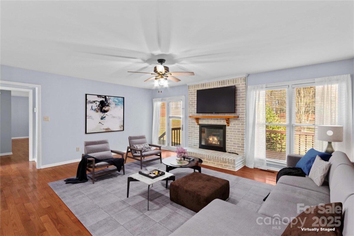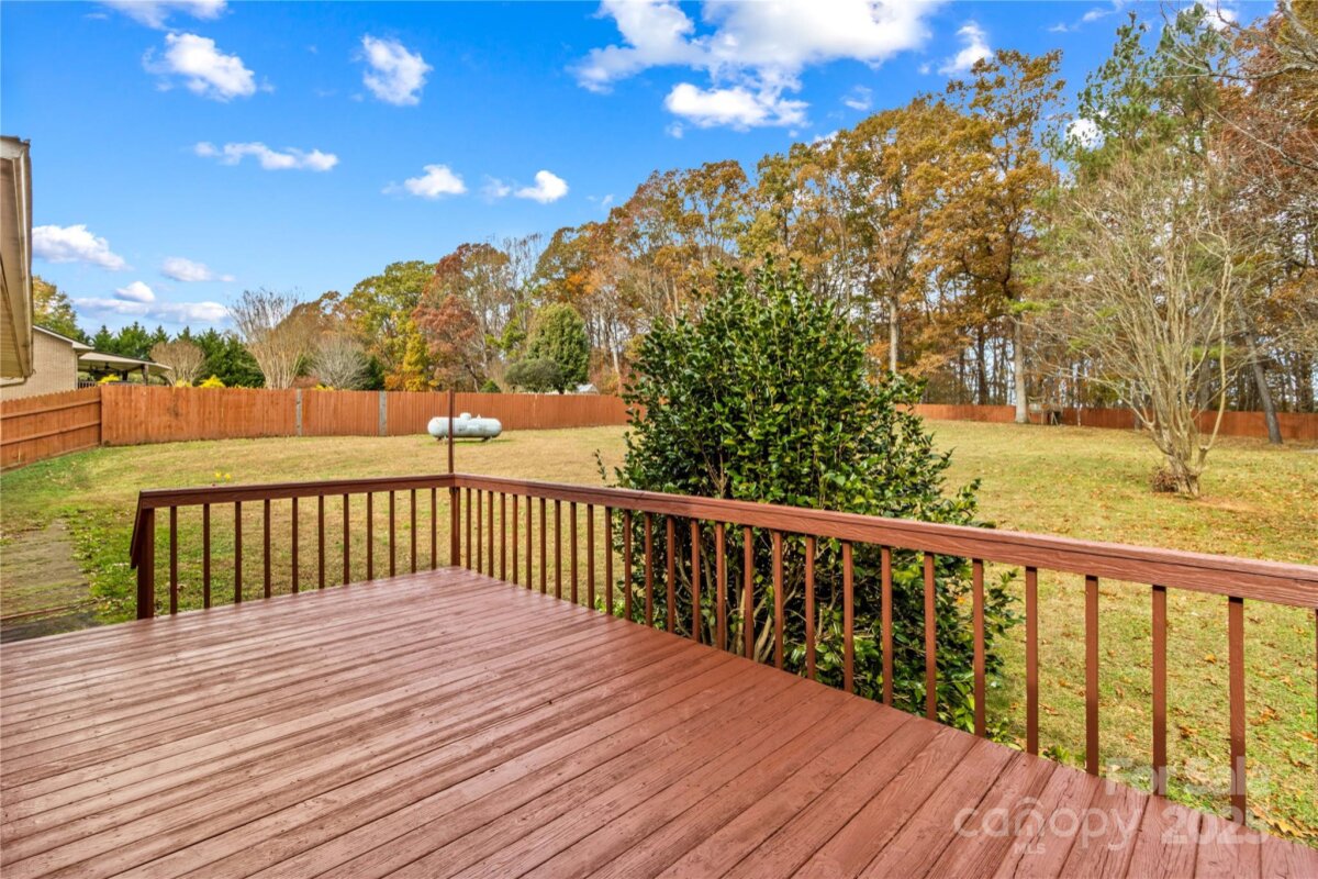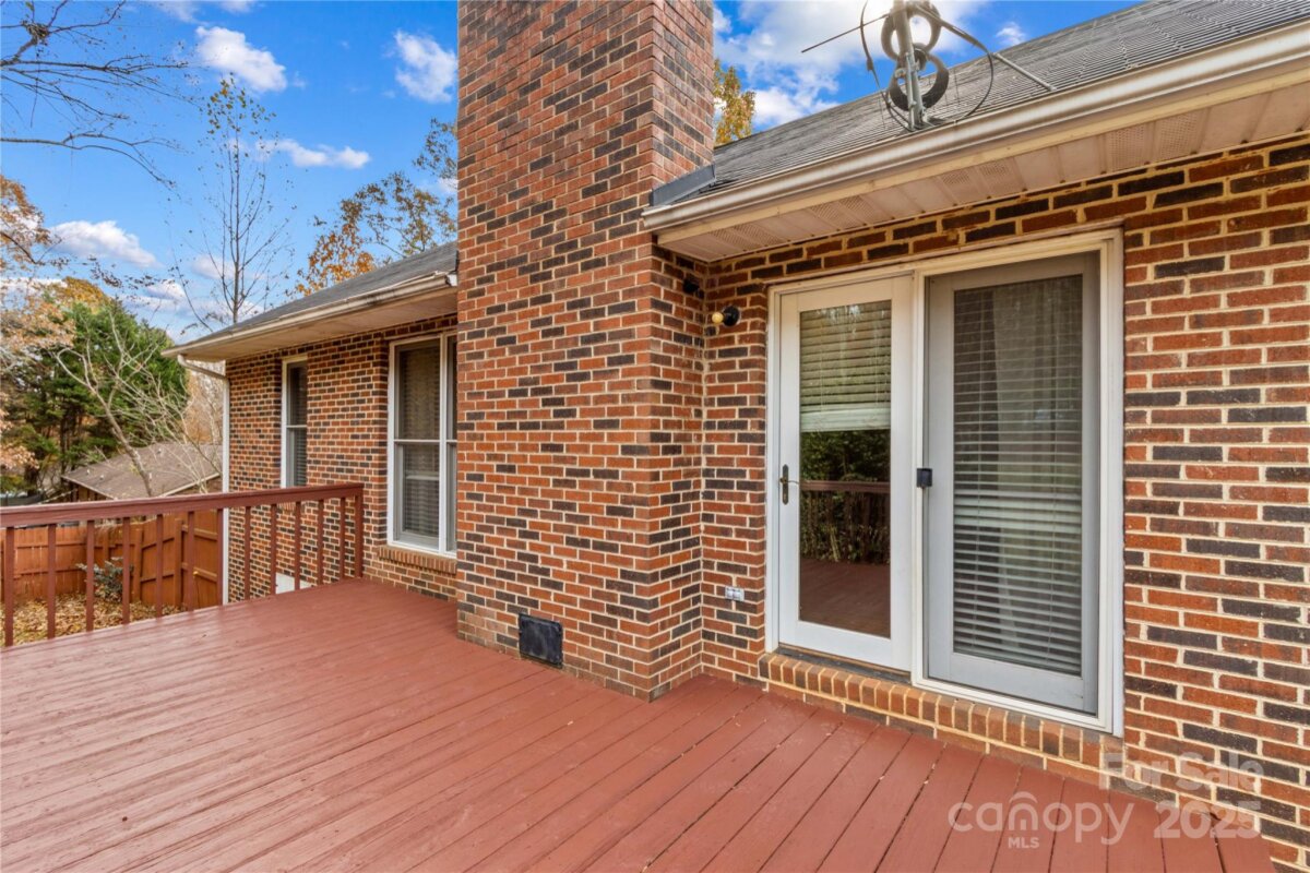 This meticulously maintained home in the sought after Piney Oaks neighborhood offers 3 bedrooms and 2 full baths on just over a 1 acre lot. You will love the updated primary suite that has a huge tiled shower with rain head system, built-in makeup vanity, dual sinks, and walk-in closet. Living room has cozy brick fireplace. The kitchen is complete with matching stainless appliances, tiled backsplash, and tons of cabinets. With a breakfast area and formal dining room, entertaining guests is a breeze. Gleaming hardwoods throughout home! Freshly stained back deck overlooks the fenced yard with storage building. Amazing location that is convenient to I-77, I-40, shopping, dining, and award-winning schools.