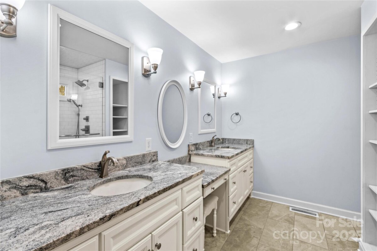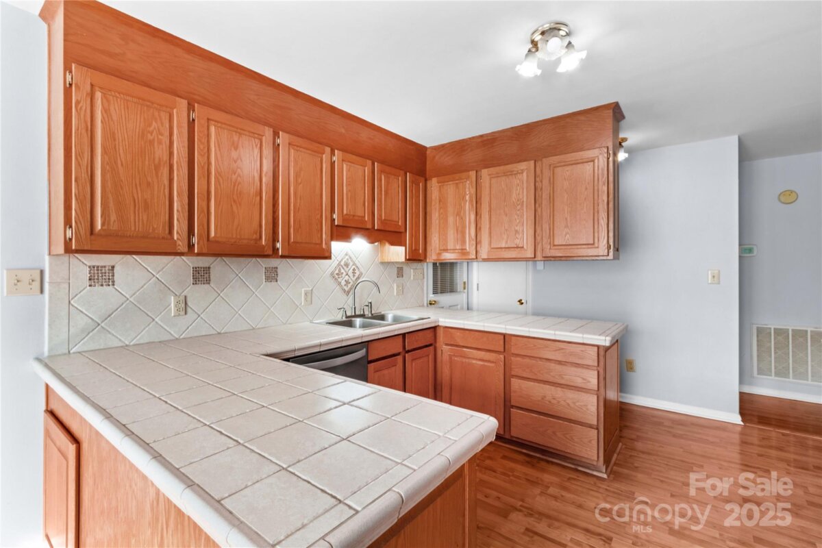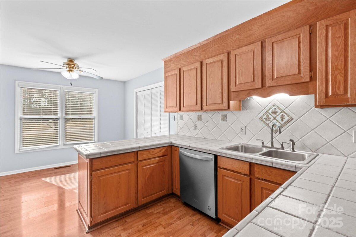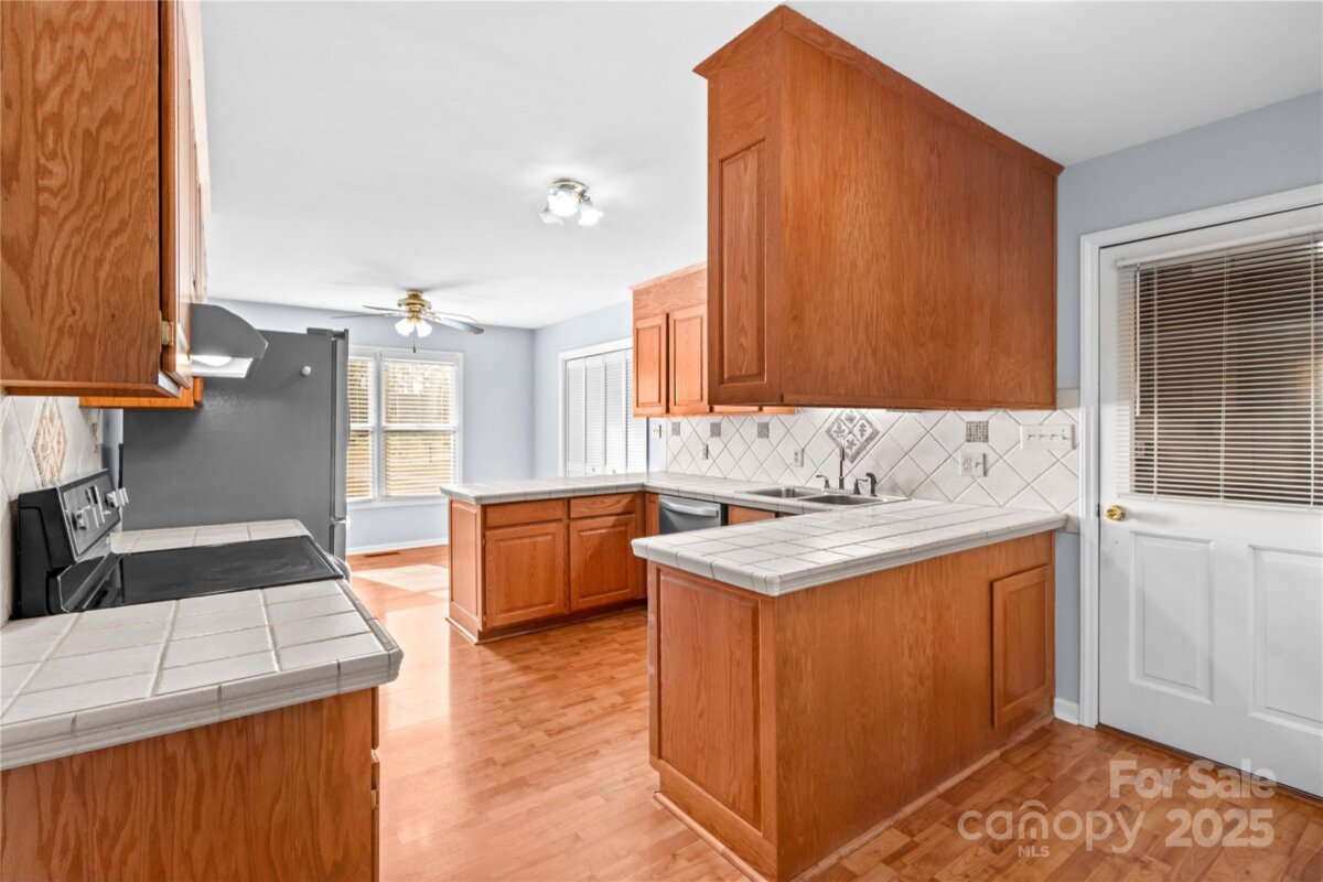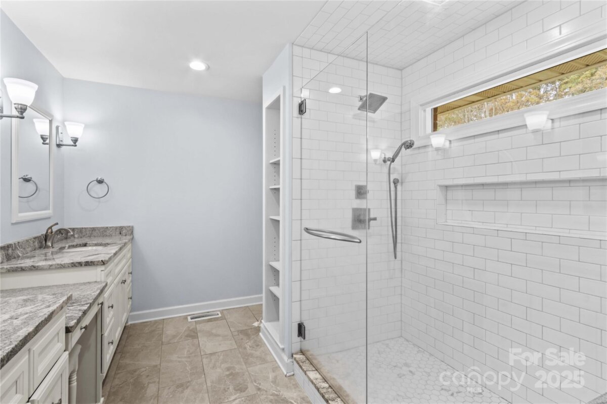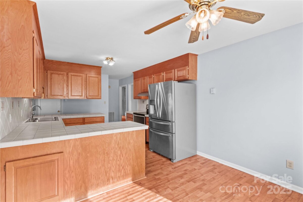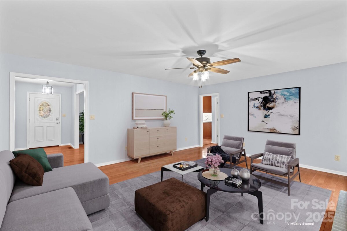 This meticulously maintained home in the sought after Piney Oaks neighborhood offers 3 bedrooms and 2 full baths on just over a 1 acre lot. You will love the updated primary suite that has a huge tiled shower with rain head system, built-in makeup vanity, dual sinks, and walk-in closet. Living room has cozy brick fireplace. The kitchen is complete with matching stainless appliances, tiled backsplash, and tons of cabinets. With a breakfast area and formal dining room, entertaining guests is a breeze. Gleaming hardwoods throughout home! Freshly stained back deck overlooks the fenced yard with storage building. Amazing location that is convenient to I-77, I-40, shopping, dining, and award-winning schools.