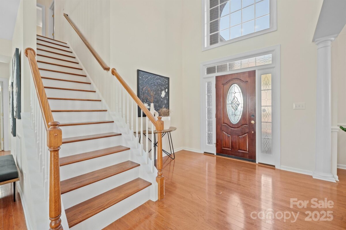 Welcome to this beautiful two-story, single-family home nestled in the highly desirable Providence Pointe community. Offering 4 spacious bedrooms and 3 full baths, step inside to discover hard wood flooring throughout the house, Tiles in the bathroom and laundry room. fresh paint in every room, two story great room, creating a bright and modern atmosphere. Complete with a massive center island in the kitchen, gas cooktop, tile backsplash, wall-mounted oven/ microwave, and ample cabinetry—ideal for entertaining or everyday living. A first-floor guest suite with a full bath offers flexibility and privacy for visitors or multi-generational living. Enjoy outdoor living fully fenced-in backyard—perfect for kids, pets, or simply unwinding in peace. Additional highlights include: attached two car garage, and in-ground irrigation system. Located just minutes from shopping, dining. Top rated schools!! schedule your tour today!