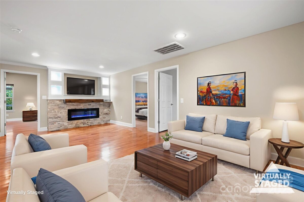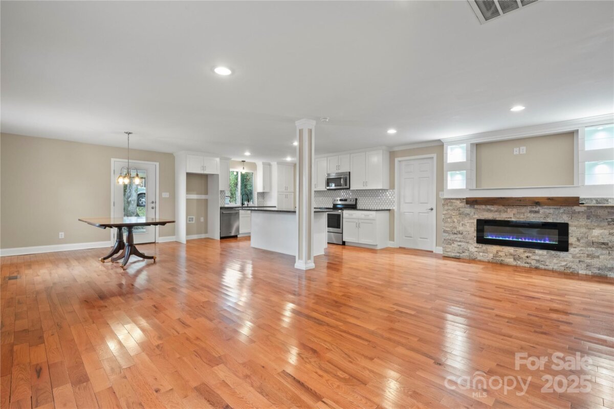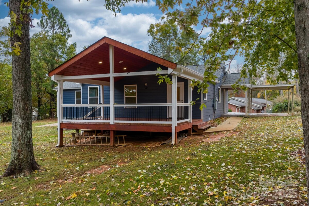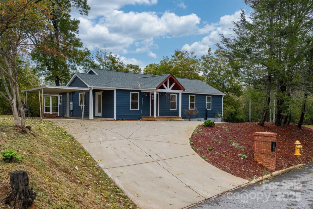 This stunning 3-bedroom, 2.5-bath updated ranch combines classic 1930s charm with the comfort and convenience of modern living. Completely renovated and expanded in 2022, the home features an open-concept layout with vaulted ceilings, tongue-and-groove wood paneling, and new hardwood flooring throughout. The kitchen serves as the heart of the home, showcasing a massive granite island, new stainless-steel appliances, and a spacious dining area ideal for entertaining. Every major system has been upgraded, including all-new plumbing, electrical, and HVAC, offering peace of mind and energy efficiency. A large covered rear deck overlooks the sprawling, level 0.51-acre lot, complete with mature landscaping and partial fencing. The new attached carport and circular concrete driveway provide ample parking and an easy flow for guests. Inside, the thoughtful floor plan includes a dedicated laundry room off the main hall and well-appointed bathrooms with modern finishes throughout. Conveniently located within easy reach of Hickory and the Charlotte metro area, and only a short drive from the mountain towns of Blowing Rock and Boone, this home offers a rare combination of craftsmanship, comfort, and location.