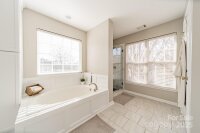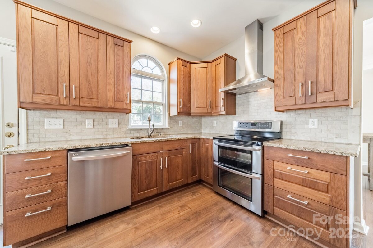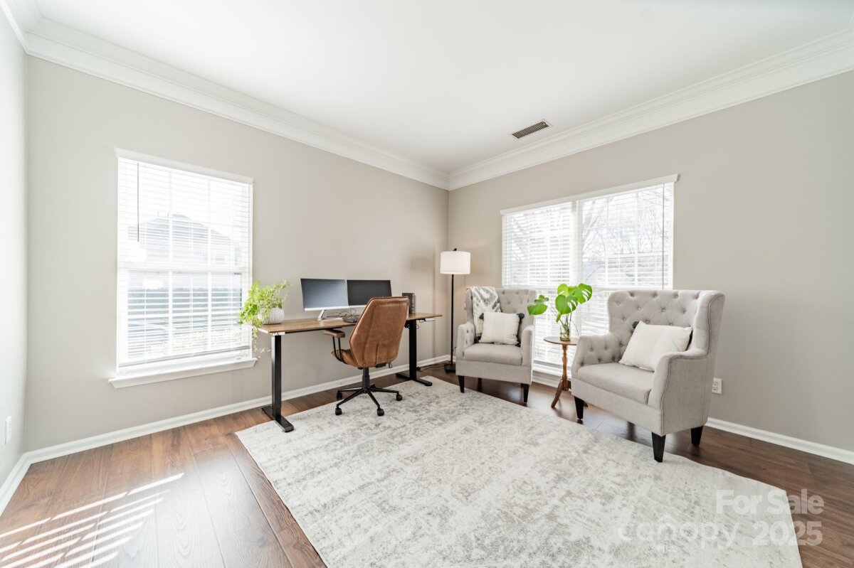 Welcome to this beautifully maintained 4-bedroom, 2.5-bath home on a desirable corner lot in the sought-after Northstone community of Huntersville. With 2,440 square feet of well-designed living space, this home features an open floor plan filled with natural light, crown molding, and low-maintenance flooring with a wood-grain finish throughout most of the home. The updated, transitional-style kitchen offers granite countertops, stainless steel appliances, tile backsplash, ample cabinetry, and a center island with breakfast bar seating, opening to the living area with a cozy fireplace—ideal for everyday living and entertaining. A main-level flex space provides options for a home office or sitting room. Upstairs, the spacious primary suite features a tray ceiling and a primary bathroom refreshed in 2023 with a new tiled shower, updated tub surround, and added storage tower. Secondary bedrooms are generously sized. Enjoy outdoor living in the fenced backyard. A newer HVAC system adds peace of mind. Convenient to shopping, dining, Lake Norman, and major highways. Northstone amenities are available to use through membership at NorthStone Country Club. To learn more and inquire about membership levels, visit www.northstoneclub.com/membership.
