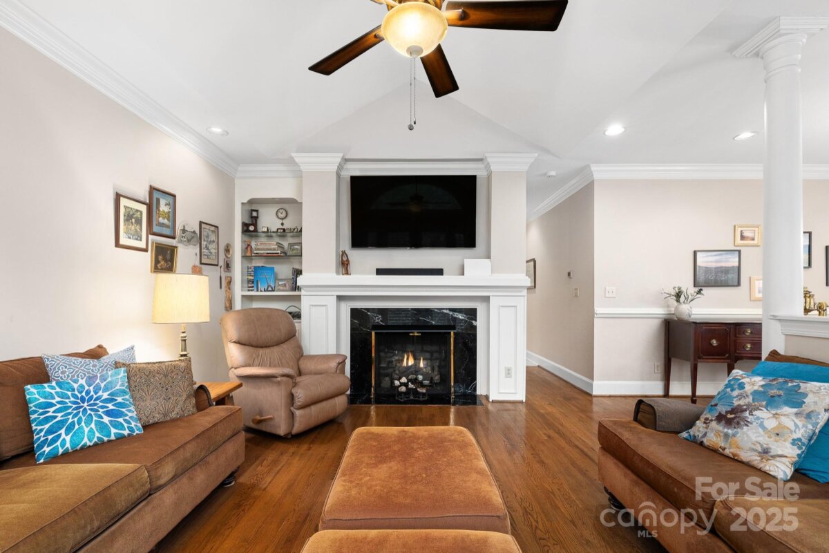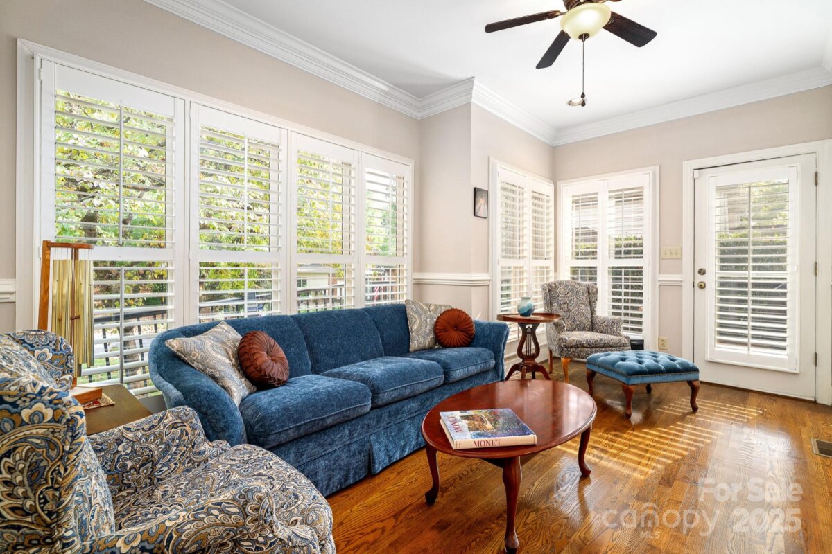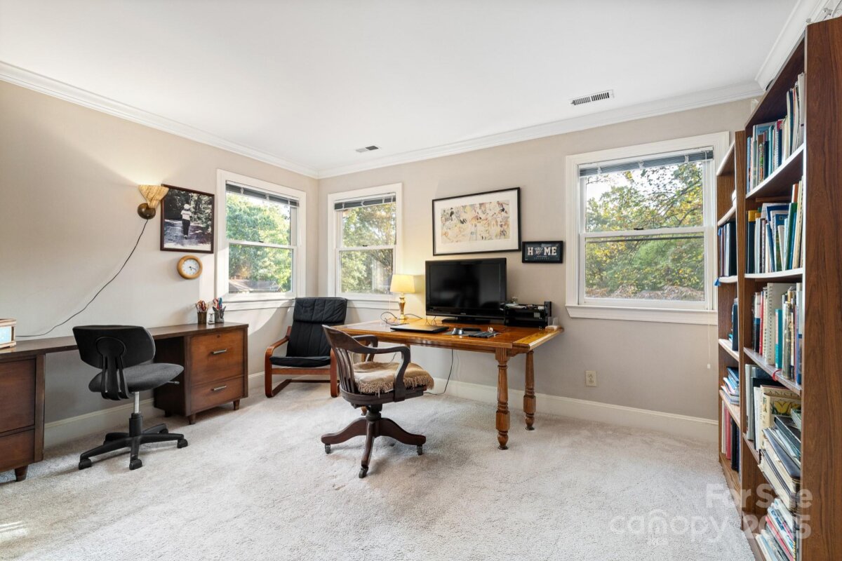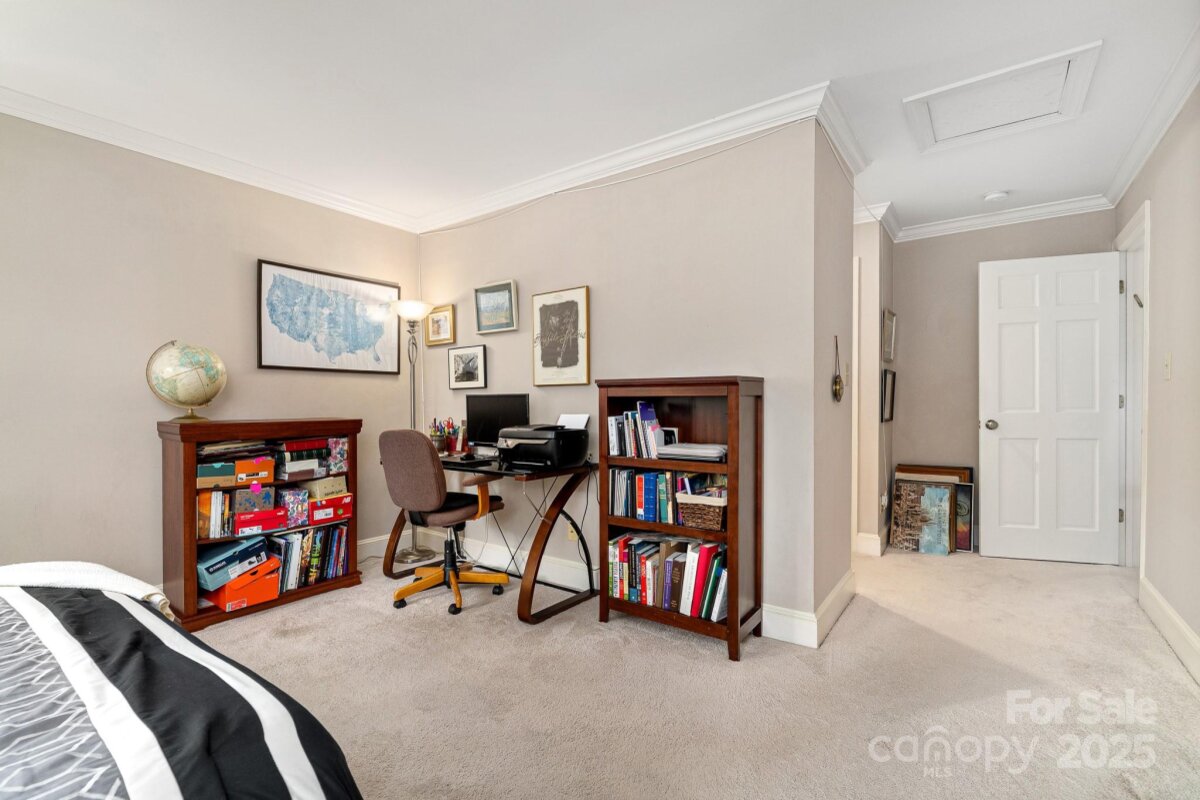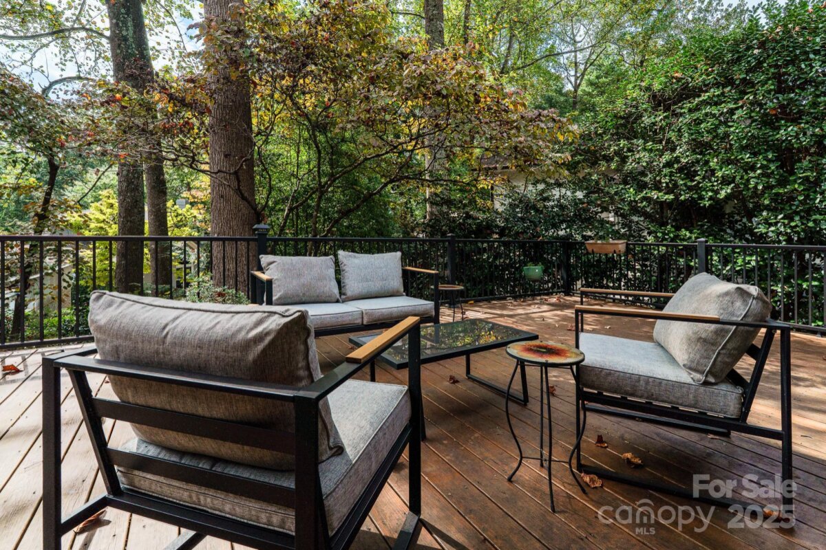 Exceptional home with unique features blended into a 22-home development with total privacy with no thru traffic. Maintenance Free Living...Lock it Up and Go! Desirable South Charlotte Living. HOA includes landscaping, road maintenance and water/sewer bill. Primary on the Main w/ an additional Guest en suite, One level living w/ additional 2 Juniors suites upstairs w/ an over sized loft Perfect for Family & Friends to visit. Open living space with architectural details throughout, a Culinary Haven for all your holiday needs. The dining room can accommodate 10 people easily. The living room featuring a charming fireplace invites warmth and relaxation. It can be open to the generous deck with the double French doors. A nice Sunroom is a bright versatile space with multiple windows that brings the outdoors in, offering a comfortable and protected area for relaxation, dining, or work. Discover true outdoor serenity on the expansive, oversized deck. This secluded retreat is a natural Haven, encircled by a canopy of mature trees that provide a lush, private backdrop for relaxation or entertaining. Enjoy your morning coffee or host evening gatherings in complete tranquility. WELCOME HOME ....
