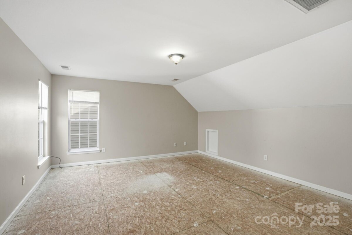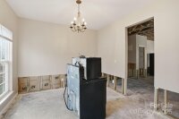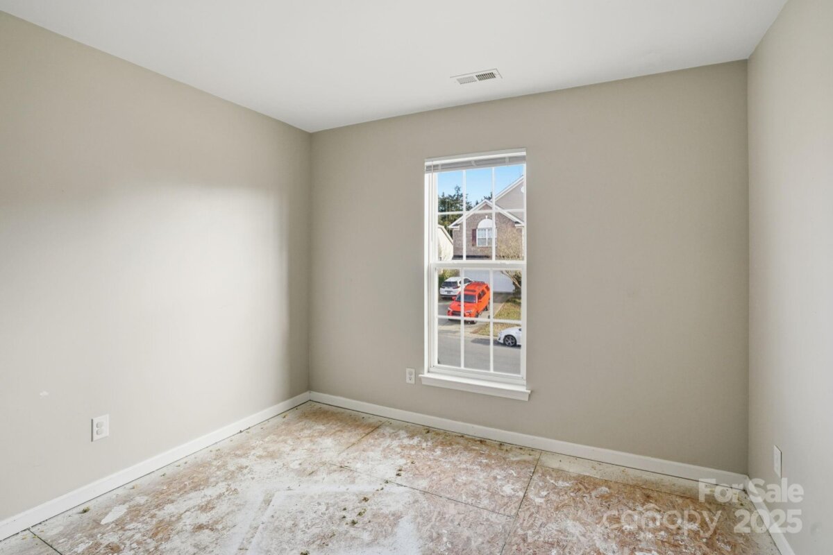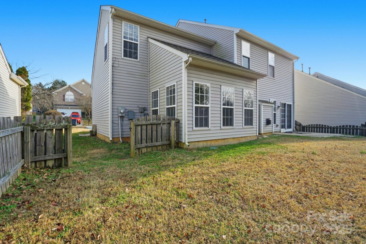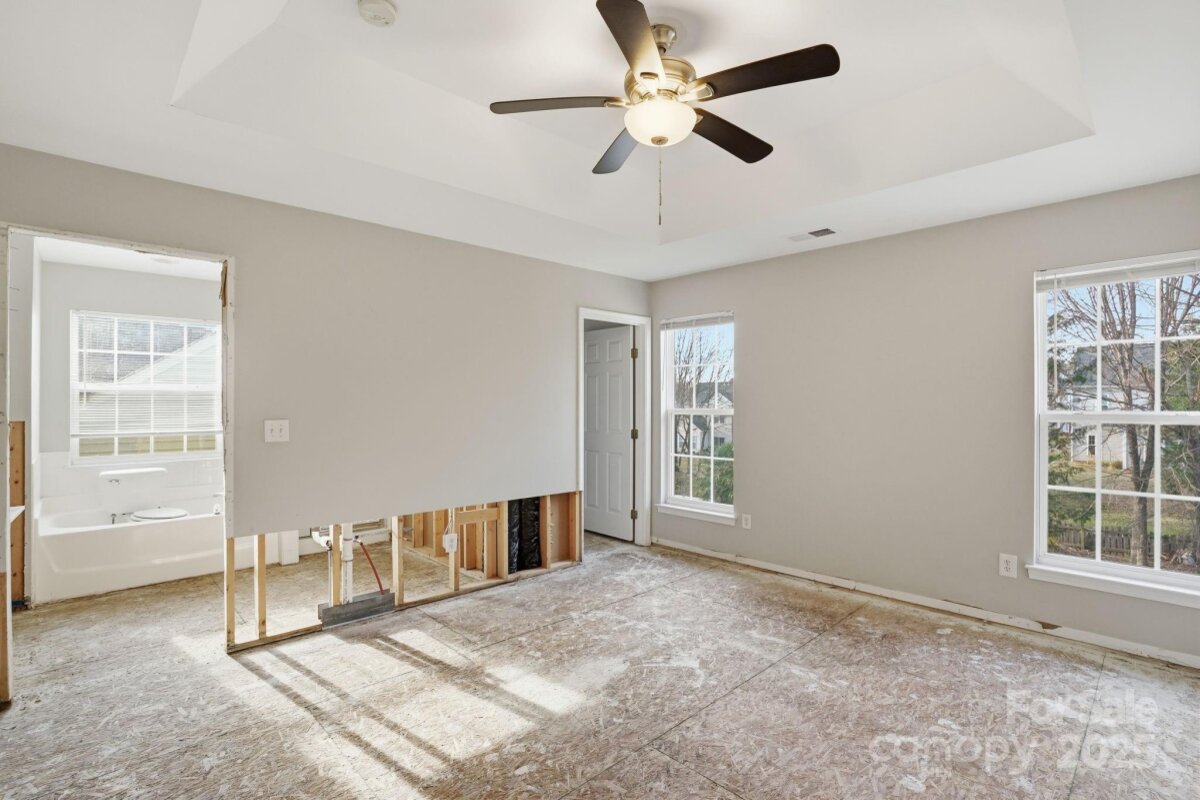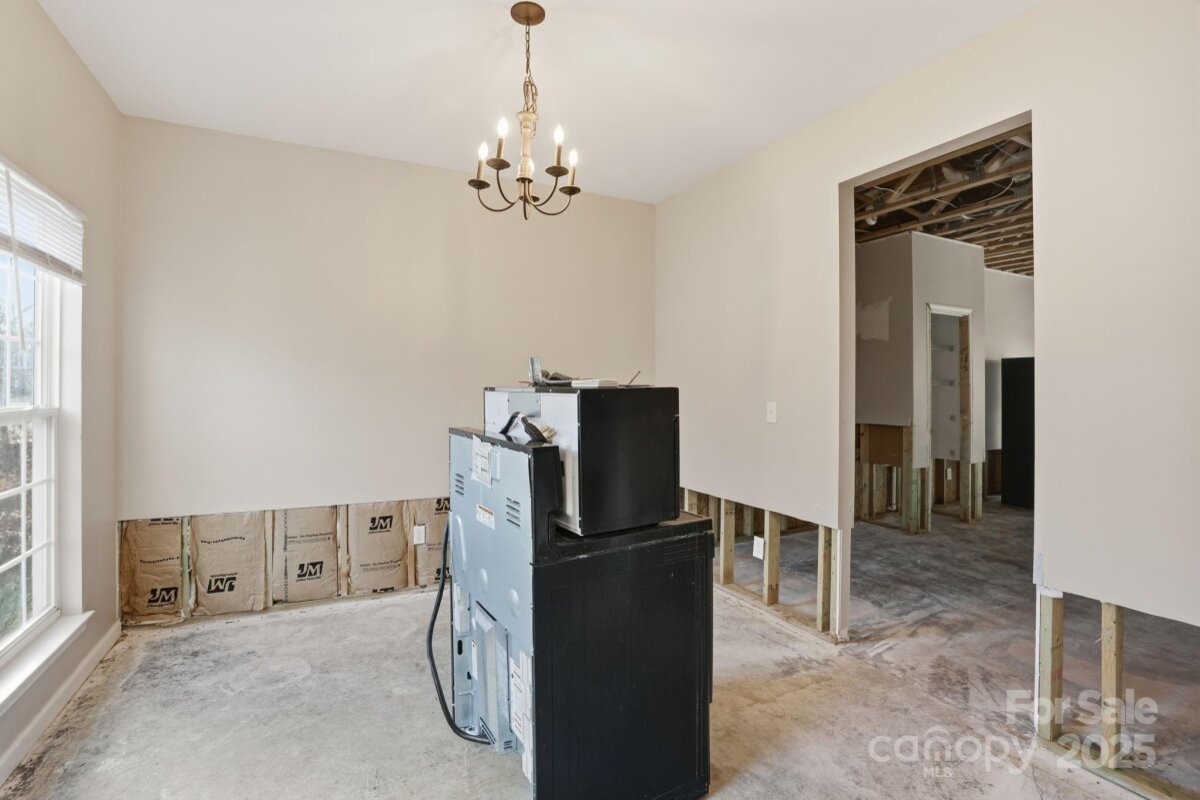 Two-story home with 3 bedrooms, 2.5 bathrooms, and a 2-car garage. The living room features a fireplace, and the home offers a spacious layout with a large wood-fenced backyard. Interior areas require significant renovation—sections of walls and ceilings are stripped to the studs, flooring is down to the slab, and cabinets, counters, sinks, and vanities are missing in the kitchen and bathrooms. Property is being sold as is and presents a strong opportunity for restoration or investment. Cash or hard money only.