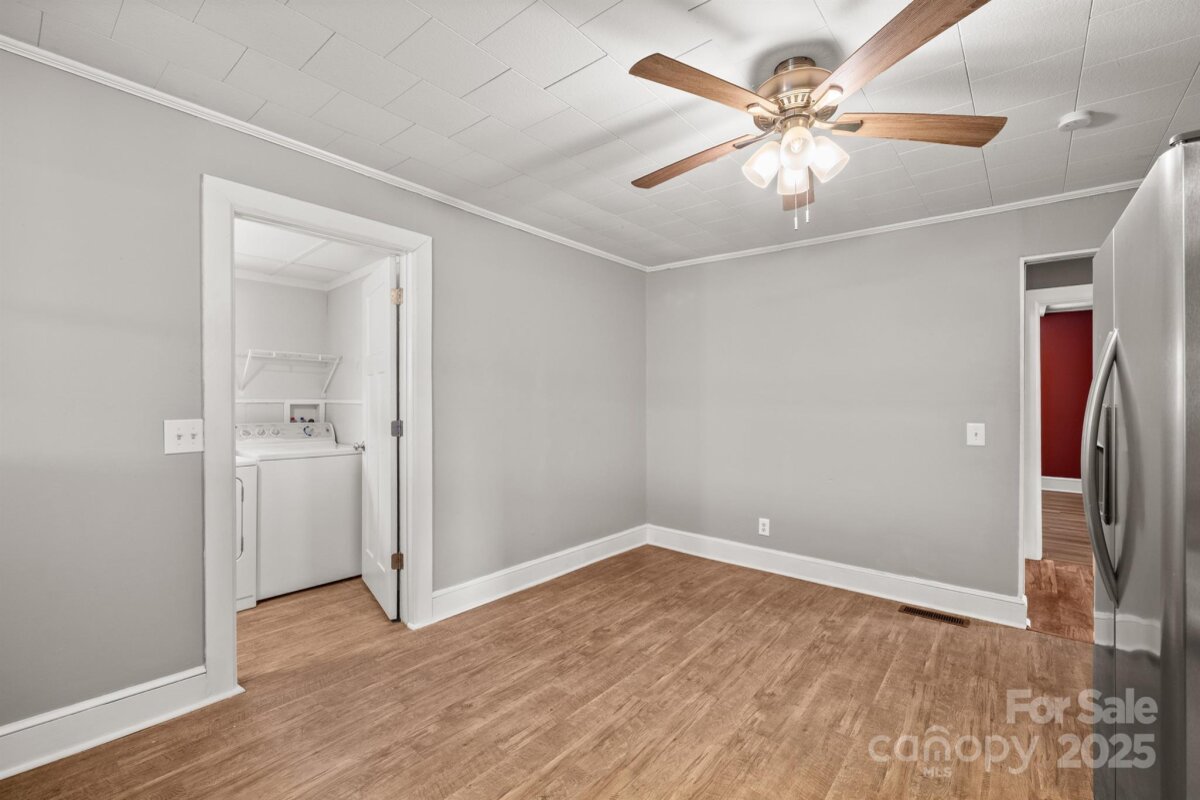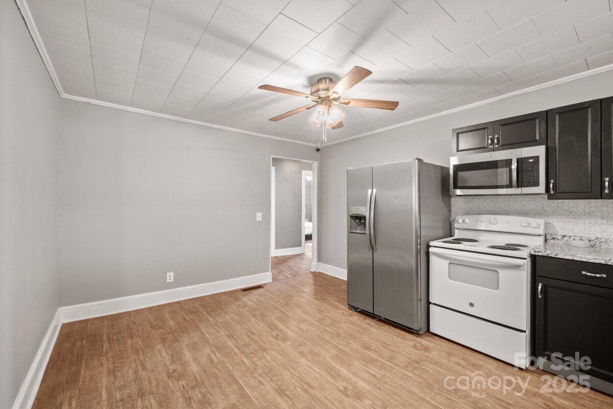 Welcome Home to this thoughtfully updated 2 bedroom, 1 bath home offering a comfortable layout under 1,000 sq ft, set on just over an acre with a wooded backdrop and a creek along the rear of the property. Inside, the home features an updated kitchen, newer flooring, fresh paint in most rooms and a dedicated laundry room with built-in shelving. All appliances convey—including the refrigerator, washer and dryer—and the Ring doorbell and cameras will remain as well. It’s also believed there may be original hardwood floors beneath the current flooring. The current and past sellers have steadily improved the home over the past six years, including a brand new septic tank in 2025, with a newer roof, carport roof, windows, HVAC, plumbing, kitchen, toilet, flooring, gutters, and deck, along with the addition of a detached 2-car garage. The powered garage is built with 3-inch concrete and an insulated roof, offering great utility for storage, parking, or projects. In addition to the garage, the property includes a carport with a powered workshop/extra storage space. Outdoor space is a highlight here—plenty of room to spread out, enjoy the creek, or create the backyard you’ve been imagining. The property sits just outside the Lincolnton city limits—close enough to enjoy downtown’s shops, restaurants, parks, and local events, but without the city taxes. You’re also in a convenient spot for commuting or day trips, with Charlotte, Hickory, Gastonia, Denver, and the Lake Norman area all within an easy drive.