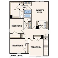Comfort and style come together in the Rowan floor plan at Asbury Ridge, which opens with a foyer that leads past a powder room into an expansive open kitchen with a Quartz countertop, featuring a center island and a walk-in pantry. A dining area and a great room are adjacent. Upstairs, a lavish owner’s suite includes a large walk-in closet and a private bath with dual sinks, a walk-in shower, and a soaking tub. Three additional bedrooms complete this attractive floor plan.