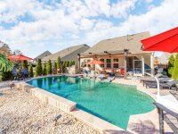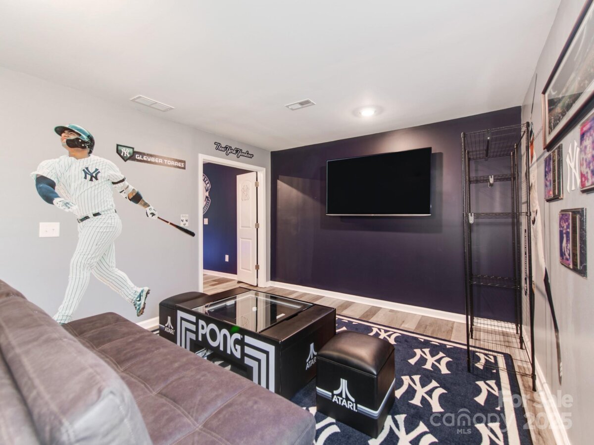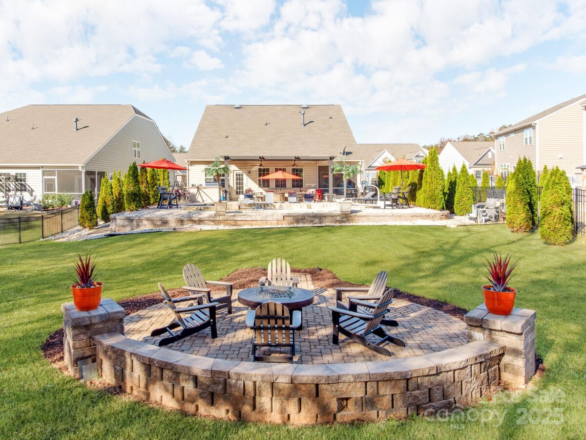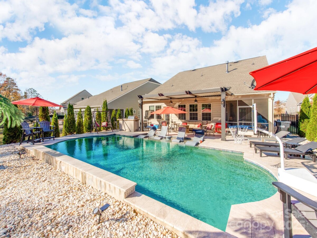 Welcome to this stunning 1.5-story luxurious home, with over $300,000+ in high-end upgrades, offering an exceptional blend of entertainment, comfort, and accessiblity with being in Greater Charlotte's Top Tier Schools! This Home is unparrellel of its kind, offering Resort Style features including Movie Theatre, High-End Custom Salt Water Pool and Travertine Terrace, Custom Firepit, and a pergoloa that has the functionality to open and close making it an enclosed porch! So many upgrades! The main level hosts three spacious bedrooms, including a master suite with upgraded flooring, a walk-in closet, dual vanities, and direct access to both the pool and a private screened-in porch that overlooks the fully decadent fenced in backyard that backs up to a picturesque horse farm. The gourmet kitchen boasts an open concept with a double oven, walk-in pantry, and stylish finishes. A dedicated laundry room adds convenience and function to the main floor layout. Upstairs, a full movie theater, additional bedroom, full bath, and man cave create an impressive leisure and guest space. Luxury shades that open and close with a flip of a switch refine the home's interior. The upgraded stone-wall fireplace adds warmth and elegance to the main living area. The garage features upgraded flooring, offering durability and a polished look. Modern living is elevated with a $20,000 whole-home generator, comprehensive smart-home features, and ADT security with expanded video coverage. Altogether, this home delivers unmatched craftsmanship, thoughtful upgrades, and resort-level amenities in a breathtaking setting.