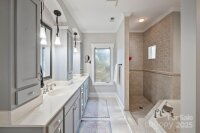 Welcome to the Pinnacle of Lake Hickory Living in desirable Moores Ferry! This extraordinary waterfront home boasts 157 feet of shoreline with a covered boat lift, offering breathtaking main channel views from every room. Thoughtfully designed with luxury and comfort in mind, this home is the perfect blend of elegance and functionality. Step through the arched glass entry into a stunning interior featuring hand-scraped hardwood floors, vaulted ceilings, and a grand great room with beamed ceilings and a striking stone wood-burning fireplace. The space seamlessly flows onto a covered side porch, ideal for enjoying lake views year-round. The chef’s kitchen is a dream—equipped with granite countertops, a spacious island with limestone surface, separate refrigerator and freezer, walk-in pantry, and a cozy eat-in area overlooking the back deck along with an office niche. The gorgeous main-level primary suite offers a serene retreat, complete with a walk-in closet and a luxurious ensuite featuring dual vanities, a separate tub and shower, and a linen closet. Also on the main level: a second bedroom with its own walk-in closet and ensuite bath, plus a formal dining room & elevator. Upstairs, enjoy a spacious den with private overlook, a full bath, and a flex space—perfect for a guest suite, office, or hobby room. The lower level provides a second living area with a great room, 2nd kitchen, dining area, two additional bedrooms or flex spaces, and access to a covered deck—ideal for entertaining or multi-generational living. This lakeside gem has it all—luxury, views, and space for everyone. Don't miss your chance to experience life at its finest on Lake Hickory!