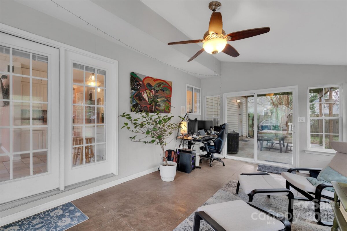 Beautifully located in the revitalizing Stallings/Matthews area, this 4-bedroom home offers exceptional value in the lower $400s. Enjoy quick access to I-485, Downtown Matthews, Sun Valley, the New Atrium Union West Hospital and Emergency Care Complex as well as an Easy Walk to Stallings Park. Neighborhood amenities include a Spacious Inground Pool & Recreation Area, making summers fun and effortless for one of the lowest HOA dues amounts in the Area. The smart, functional floor plan features Open Main Level Living, a spacious 230 sq ft sunroom/flex space, a large 4th bedroom/flex room, and a vaulted Ceiling Primary Bedroom with Ensuite Bath and a Deep Walk-In-Closet. Outdoor living shines with a pergola-covered patio, fenced backyard designed for play, pets, and outdoor gatherings, and a freshly painted 14×20 wired storage building perfect for a workshop, hobby space, or extra storage. Additional highlights include a covered rocking-chair front porch, natural-stone landscape beds, architectural-shingled roof, surround sound in the living room, butcher-block kitchen counters, upstairs laundry, updated lighting, and large 2-car garage with rear access to backyard. A fantastic opportunity in a high-growth location. Welcome Home!