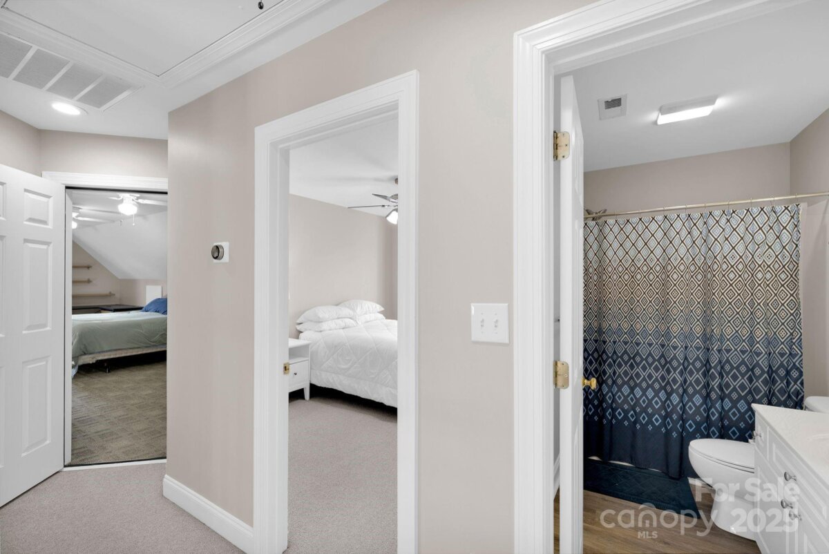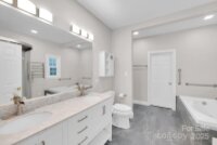 Beautifully updated brick, 2-story home with a finished walk-out basement. Recent upgrades include new LVP flooring, fresh interior paint, roof (10/2021), windows (2024), and tankless water heater (2022). The main-level primary suite is a true retreat, featuring a dual tray ceiling and spa-inspired bath with jacuzzi tub, steam shower, dual vanities, heated towel rack, smart lighting, and walk-in closet. Main level also offers a 2-story foyer, formal dining room, vaulted great room, kitchen with stainless appliances and gas range, breakfast area, laundry, and powder room. Upstairs includes two bedrooms, a full bath, and an oversized third bedroom/bonus room. Finished basement features a large entertainment area with pool table (conveys), full bath, storage, and walk-out access to a spacious backyard. Outdoor living shines with a deck, expansive patio, wood-fired oven, and smoke pit...ideal for entertaining! Home backs up to access to the Charlotte Greenway. Refrigerator, washer, dryer, and pool table w/ping pong table topper all convey with the home. Seller offering 1yr home warranty! Please see attachments for smart home features, survey, and impervious overage details.