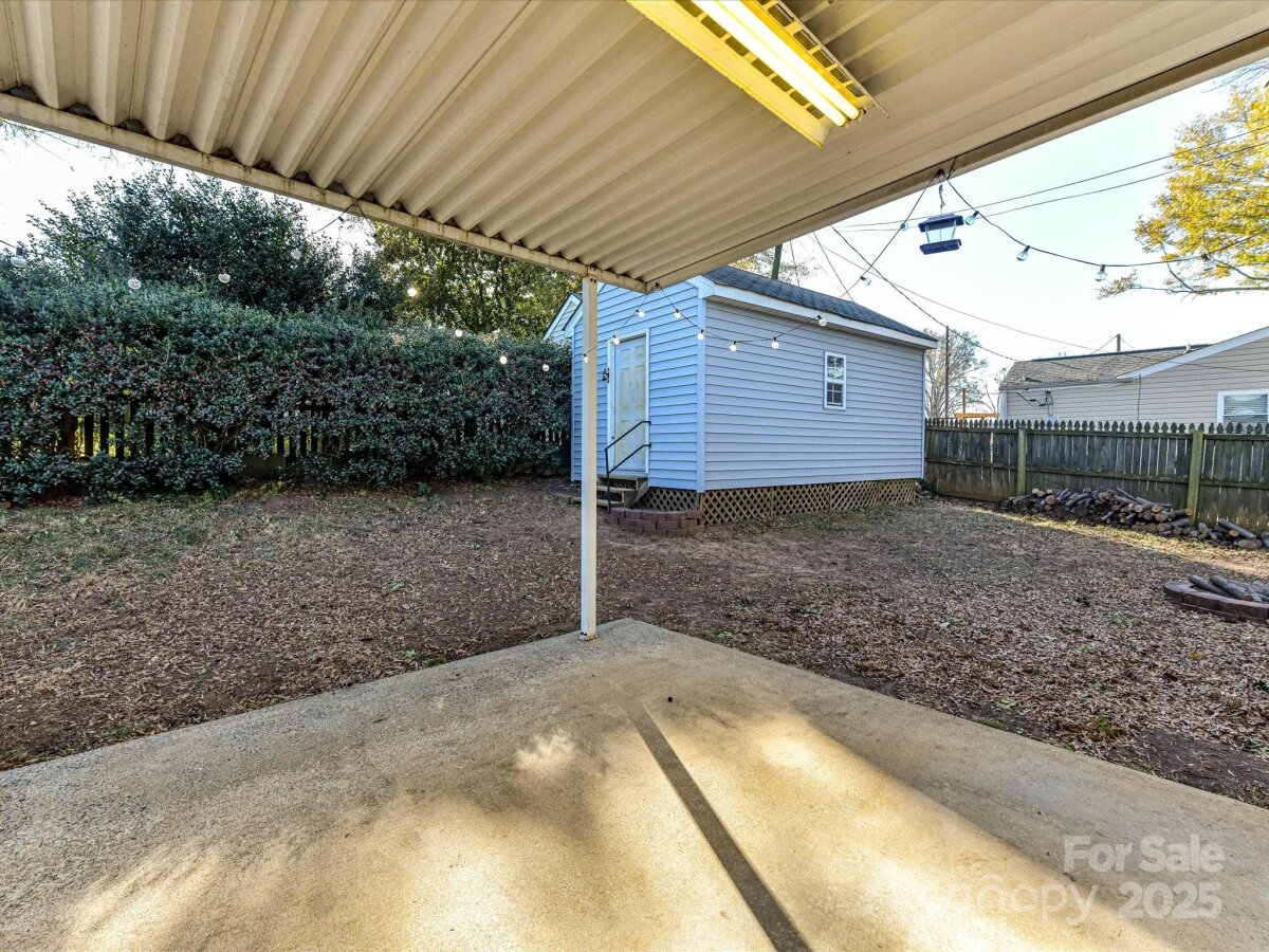 Welcome to this delightful 2-bedroom, 1-bath ranch home in the heart of charming Fort Mill. Inside, you’ll find neutral walls and light wood-look LVP flooring that create a bright, welcoming feel throughout. The spacious living and dining rooms offer comfortable gathering spaces, while the eat-in kitchen features stainless steel appliances, painted cabinetry, a stylish tile backsplash, and room for casual dining. Both bedrooms are generously sized, and the full bath includes linen cabinetry and a tub/shower combination for added functionality. A laundry room just off the kitchen leads to an oversized carport area. Step outside to enjoy covered and open patio areas, perfect for relaxing or entertaining, a fire pit area and a large, fenced backyard. A standout feature is the oversized wired shed/workshop, ideal for hobbies, storage, or projects. A new 50-year architectural roof with transferable manufacturer's warranty, installed in 2023, adds peace of mind, and new gutters were added in 2023 as well. With its unbeatable proximity to downtown Fort Mill’s shops, dining, Walter Elisha Park and community events, this home offers charm, convenience, and lifestyle in one inviting package!