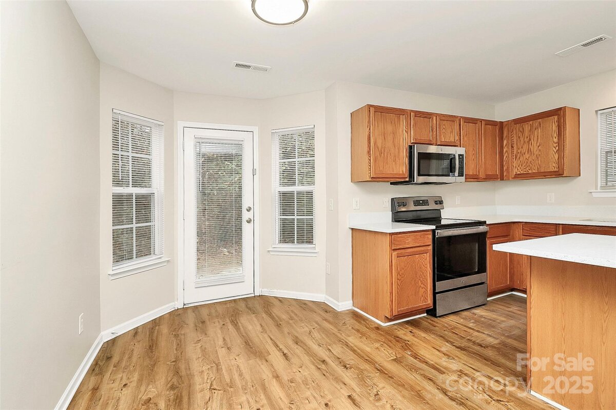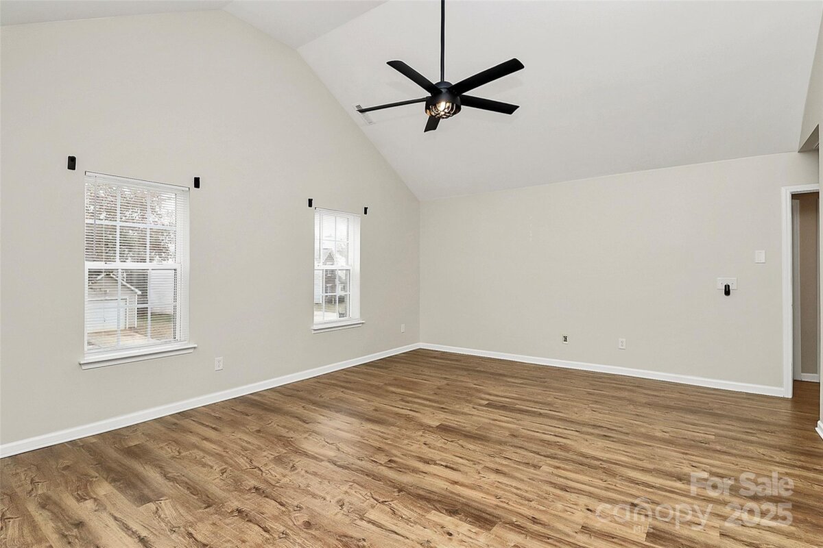 MOVE-IN READY! Welcome to this recently updated home where all its 4 huge bedrooms have cathedral ceiling. Neutral paint throughout, luxury vinyl plank on both floors, carpet on stairs; brand new roof (Nov 2025), HVAC installed in Jan 2025; Water heater (Aug 2024). Kitchen has quartz countertop, stainless steel appliances, island, pantry and refrigerator to remain. Washer dryer to remain too. Large master bedroom with walk-in closet. Master bath boasts dual vanities, tub and separate shower. Flat backyard with concrete patio. Near Uptown Charlotte, CLT airport, Whitewater Center and easy access to interstates. Plus, this home qualifies for 100% financing, no PMI, no income limits and up to $20K lender credit. Hurry, check this one out!