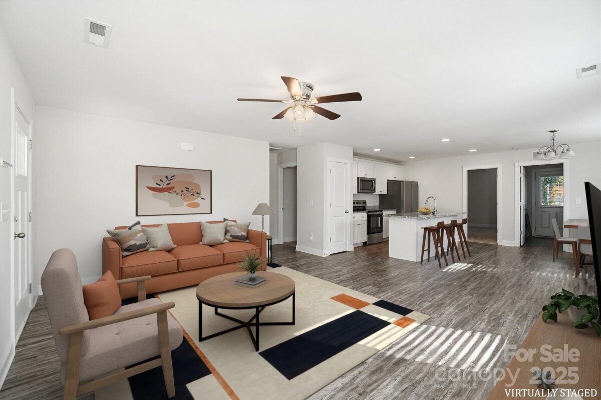 Welcome to 351 Center Street! This 3-bedroom, 2-bath home offers modern design and comfortable living just minutes from vibrant downtown Kannapolis. The open floor plan is perfect for entertaining, featuring a stylish kitchen with granite countertops, soft-white cabinetry, and stainless steel appliances. Durable luxury vinyl plank flooring flows throughout the main living areas, combining beauty with easy maintenance. Relax in the spacious primary suite with a private bath, or enjoy gatherings in the bright and airy living room. Conveniently located near shopping, dining, and entertainment, this home is move-in ready and waiting for you!