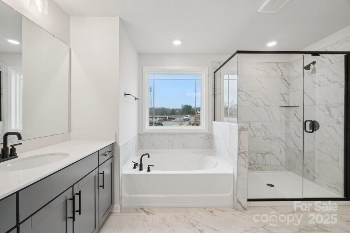 This stunning home offers modern luxury and thoughtful design. The Hampshires spacious residence features four bedrooms, and three full bathrooms, including a convenient main-floor bedroom and full bath, perfect for guests or multi-generational living. Inside, you'll find a beautifully designed kitchen ideal for any home chef, complete with high-end appliances, a butler's pantry, and a large walk-in pantry. The open-concept layout flows seamlessly into the living and dining areas, creating an inviting space for entertaining. Vinyl treads on the staircase add durability and style. The primary suite is a true retreat, featuring a sitting room, a spa like ensuite with dual vanities, and a large walk-in closet. A loft area provides additional flexible space for a home office, media room or play area. Outdoor living is just as impressive with a covered patio. As a smart home, this home is equipped with the latest technology.