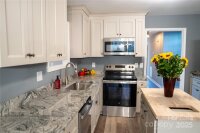 Discover comfort, privacy, and modern updates at 44585 Baldwin Road, a move-in-ready home set on 2.5 wooded acres in New London. Renovated in 2025, this property features new LVP flooring, updated lighting and plumbing fixtures, fresh interior paint, and new outlets and switches throughout. The main living area includes a stone-surround gas log fireplace with a custom walnut mantle and opens to a flexible office or dining space. The updated kitchen offers granite countertops, soft-return dovetail cabinets, all-new GE stainless appliances, a pull-out sprayer sink faucet, and a custom-built movable butcher-block island. A breakfast nook and dining area complete the main level living space. The main-level primary suite includes a walk-in closet and a renovated bath with a French door entrance, freestanding soaking tub, granite vanity, and separate shower. Two additional bedrooms feature large windows and wall closets. The refreshed full bath adds comfort and convenience for family or guests. The upstairs bonus room offers versatile space ideal for a playroom, home office, media area, or future expansion. Outdoors, enjoy a two-level deck, gazebo, and newly painted siding. Additional improvements include a 2023 HVAC system, 2023 water heater, updated plumbing and electrical, a new vapor barrier, and a security camera. Located close to Albemarle, Badin Lake, and Uwharrie National Forest, with convenient access to Charlotte for work, travel, or city amenities.