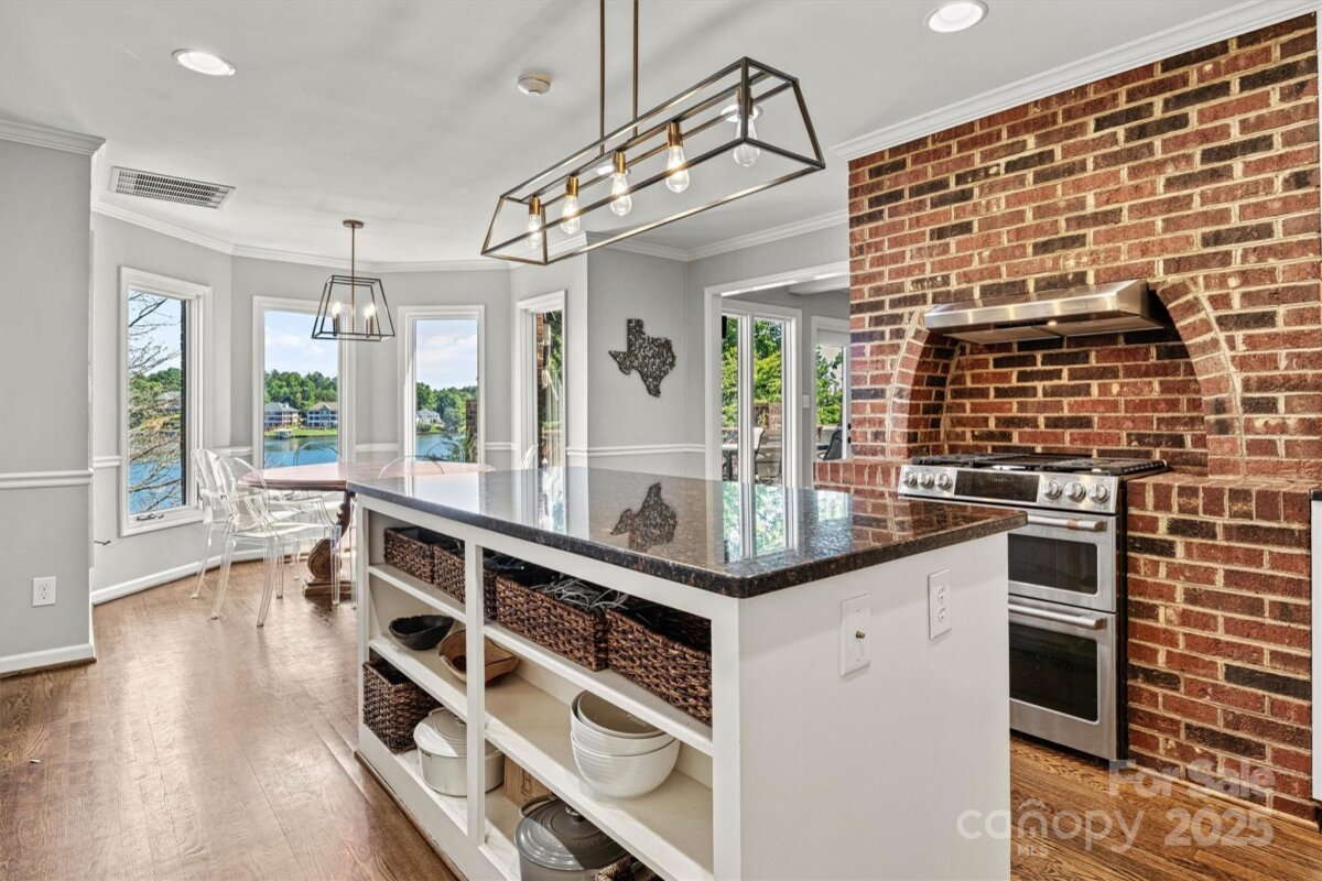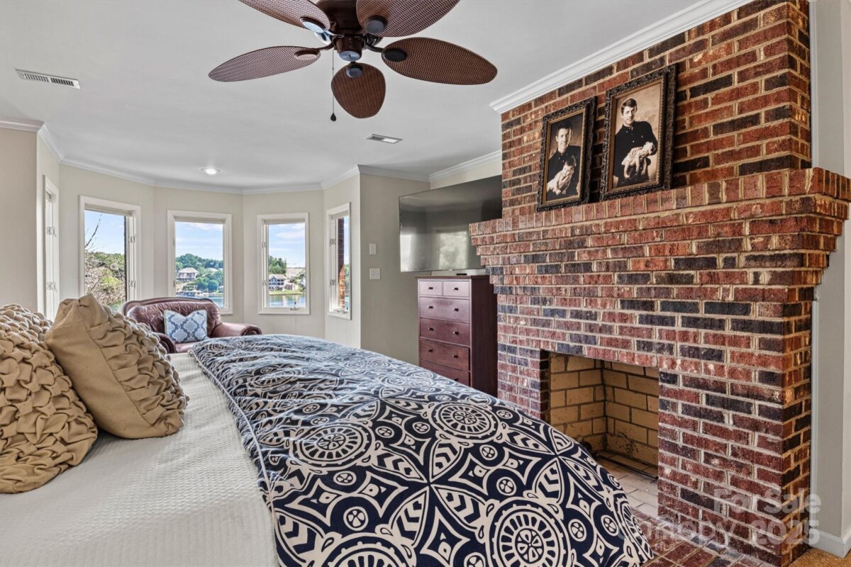 Enjoy million-dollar views from this grand lakefront home in one of Hickory’s most prestigious neighborhoods. Nestled into a private, 0.46 acre lot, this 5 BR home offers year round views of Lake Hickory offering over 141' of water frontage and dual covered boat dock. The soaring 2 story foyer opening welcomes you into a formal living room and bay window dining room, a spacious great room with beamed ceilings, a gas-log fireplace, wet bar, and unobstructed main-channel lake views and updated kitchen. The conveniently located eat-in kitchen includes an expansive center island, custom cabinetry, granite countertops and a bayed breakfast area. You will also find a generously sized laundry room, half bath and a private guest bedroom with full bath on the main level. Upstairs, the luxurious primary suite includes a fireplace, a private bay windowed sitting area overlooking the lake, and a spa-inspired bath with double vanity, heated tile flooring, walk-in tiled shower, and a huge walk-in closet. Secondary bedrooms are bright and spacious—two of which offer private balconies with serene views. The full unfinished basement is already plumbed, providing excellent potential for future expansion, and includes a walk-in cedar closet perfect for off-season storage. Enjoy outdoor living on the recently updated back deck overlooking the backyard and private boat dock. Located in a wonderful community with a pool and low HOA dues, this exceptional lakefront property truly has it all!