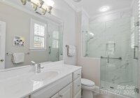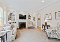 Located in the highly sought-after Carmel Crescent community, this impeccably maintained home offers 3 bedrooms and 3.5 bathrooms, with an additional upstairs office/den. The open floor plan features a renovated gourmet kitchen (2020) with high-end appliances, marble island and countertops, and custom Walker Woodworking cabinetry, seamlessly connecting to the great room with a cozy fireplace. A sun-filled sitting room and dining room grace the front of the home, while the private back patio is a true highlight — surrounded by a brick wall and filled with well manicured greenery, this large stone courtyard is a tranquil outdoor oasis. Additional updates include a 2025 guest bath renovation, nearly all new windows and back door added between 2020-22 and custom closets in every bedroom.
