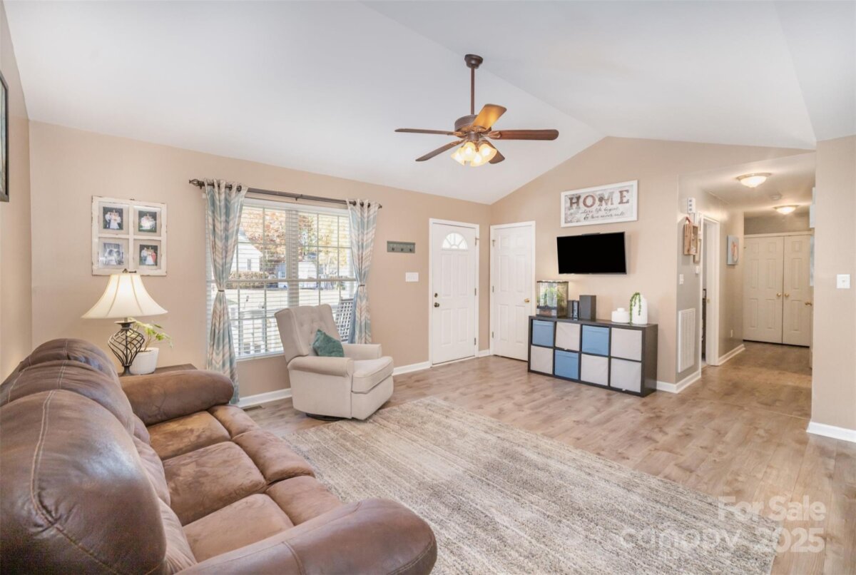 Ready for showings! This charming three-bedroom, two-bath ranch-style home has been meticulously cared for and has no HOA! The inviting open floorplan features vaulted ceilings in the living room, creating a spacious feel ideal for both everyday living and entertaining. A classic rocking chair front porch welcomes you in, while the large back deck provides a relaxing space to enjoy the outdoors, overlooking a fully fenced backyard with a storage shed. Ideally located in the desirable Clover School District and just minutes from shopping and dining. Schedule a showing today!