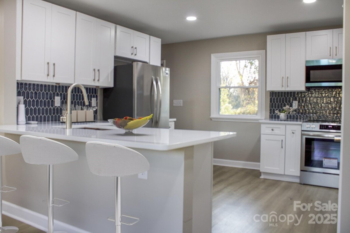 Discover exceptional value and style in this fully renovated Charlotte home—offered at under $300K! Step inside to find a bright, modern interior featuring hard-surface flooring throughout and thoughtful designer touches at every turn. The home offers 2 full bathrooms, including a luxurious ensuite showcasing custom tile-worK and contemporary fixtures. The beautifully updated kitchen is the heart of the home, complete with brand-new cabinetry, quartz countertops, and a full stainless-steel appliance package, making meal prep both effortless and stylish. Outside, enjoy a large, fully fenced backyard—a rare find at this price point—with a versatile concrete slab perfect for a future gazebo, storage shed, outdoor kitchen, or your own personalized retreat. The charming exterior boasts welcoming curb appeal, highlighted by a custom covered entrance. Located just minutes from NoDa, Uptown Charlotte, shopping, dining, and entertainment, this home blends modern comfort with unbeatable convenience. Move-in ready, beautifully updated, and affordably priced—this one checks all the boxes! **Some photos have been digitally enhanced**