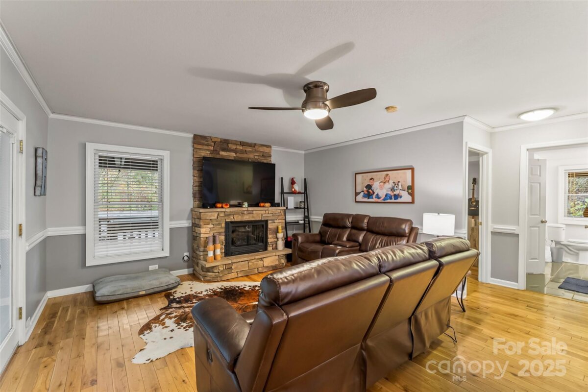 Peace & Serenity awaits at this 3BR 4Bath 2 story Log home in one of McDowells premier neighborhoods, "Hidden Lake" sitting on approx 3.39 acres. Pulling up you notice the wrap around covered porch and rustic front door which leads to 2 story foyer, then large gourmet kitchen w/stainless steel appliances including 6 burner gas range and plenty of cabinets. Formal dining and breakfast area which leads to living room w/stone fireplace. Upstairs boast large primary bedroom and owners bath complete w/soaker tub and walk in tile shower plus dual vanities. Upstairs also offers bonus BR and loft area w/2nd full bath. Lower level offers Den area w/2nd stone fireplace, 2nd kitchenette and another bedroom complete w/full bath. Outside offers detached workshop or home gym area overlooking the 3+ acres of land w/lush creek frontage great for enjoying the outdoors. Home also is wired for whole house generator and electric car charging connection. Property also offers the opportunity to purchase adjoining 8.3 acres if you want even more privacy. Hidden Lake is a gated community w/amenities including outdoor pool, trails and of course hidden lake.