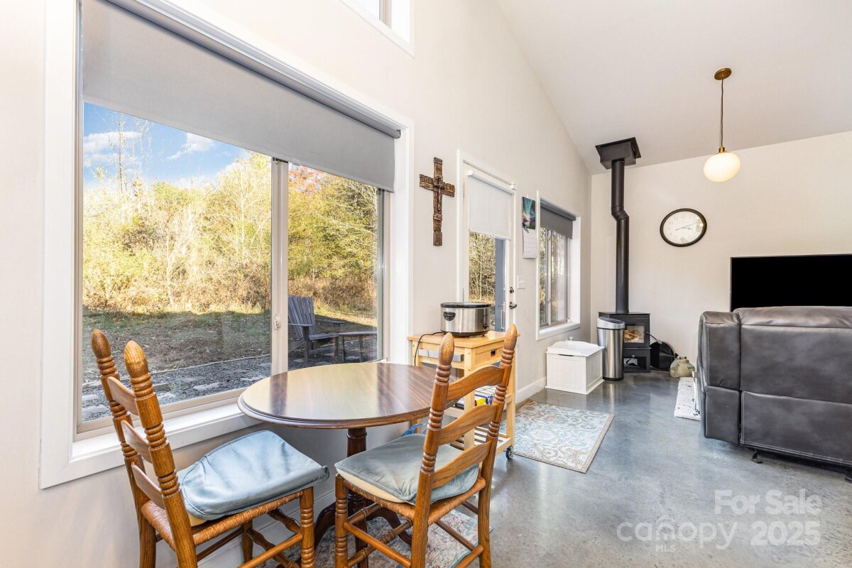 2.8% Assumable FHA! Tiny Home Alert!This is a very unique property. It is set on 2+ acres with no HOA. One bedroom with living room and kitchen and 1 full bath. Entire home has polished concrete flooring. There is a storage unit that also conveys with the property. A/C unit replaced in 2023. There is a old fashion style wood burning stove tht will heat the whole house. This is a must see!