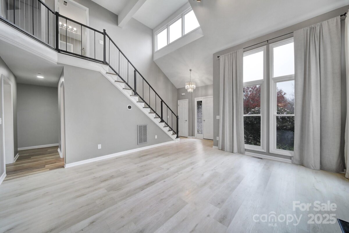 Welcome to this beautiful home situated on a spacious half-acre lot in Mooresville’s desirable Allison Park neighborhood. This inviting property features an open-concept layout centered around a soaring two-story great room with a gas fireplace and abundant natural light from floor-to-ceiling windows. The adjacent dining room, kitchen, and breakfast area create a comfortable flow ideal for everyday living or hosting guests. The main-level primary suite includes a vaulted ceiling and an ensuite with an oversized tub, separate shower, dual-sink vanity, and walk-in closet. A convenient half bath and laundry room complete the first floor. Upstairs, you’ll find two additional bedrooms, a full bathroom, and a flexible bedroom or bonus room. Step outside to a peaceful backyard retreat with a patio, shed, and plenty of space to relax or play. Solar panels are fully paid off and provide added energy efficiency. Enjoy quick access to Downtown Mooresville’s shops and restaurants, nearby medical facilities, major employers like Lowe’s Corporate, and all Lake Norman has to offer. Zoned for highly regarded Mooresville Graded Schools. Low HOA.