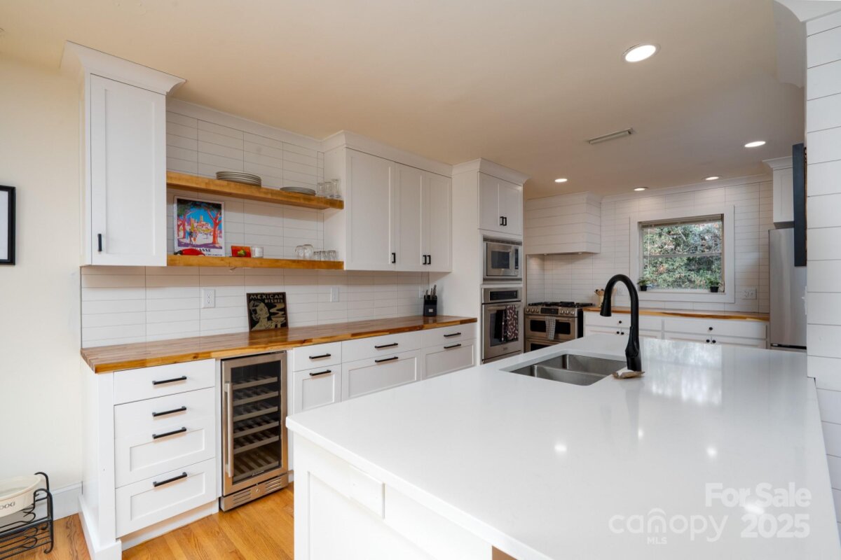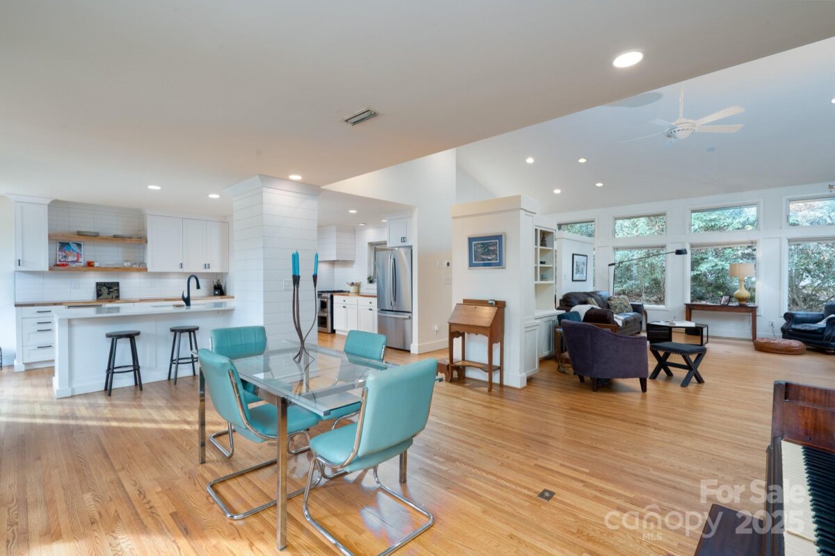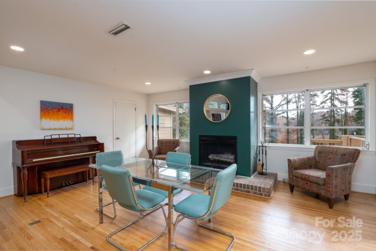 Welcome to the mid-century modern home and setting you’ve been wanting! Tucked quietly at the end of a cul-de-sac on almost one acre, this property offers rare privacy with beautiful views of both a lake and a pond. Inside, the open floor plan features a reimagined, updated kitchen and a full basement designed for flexibility—perfect as expanded living space, rental income, or a spacious two-bedroom in-law suite. The main-level kitchen is an entertainer’s dream, boasting generous counter space, a wall oven and microwave, separate gas range, beverage refrigerator, and direct access to a large deck overlooking the water. The main level also includes a bright, airy great room that fills with natural light, an inviting dining area with a fireplace, an additional bedroom and full bath, and a dedicated laundry room. The primary suite is a true retreat, complete with a large flex space ideal for an office, lounge, or studio, plus an ensuite bath, walk-in closet, and a private porch with tranquil pond views. The fully finished lower level adds exceptional versatility with two additional bedrooms, a full bath, great room with a wood-burning stove, full kitchen, laundry room, and walk-out patio. All of this is just minutes from UNC Charlotte, Plaza Midwood, NoDa, I-485, and Uptown Charlotte. Outdoor lovers will appreciate access to ten nearby parks, ranging from just 0.2 miles to 1.5 miles from your doorstep.