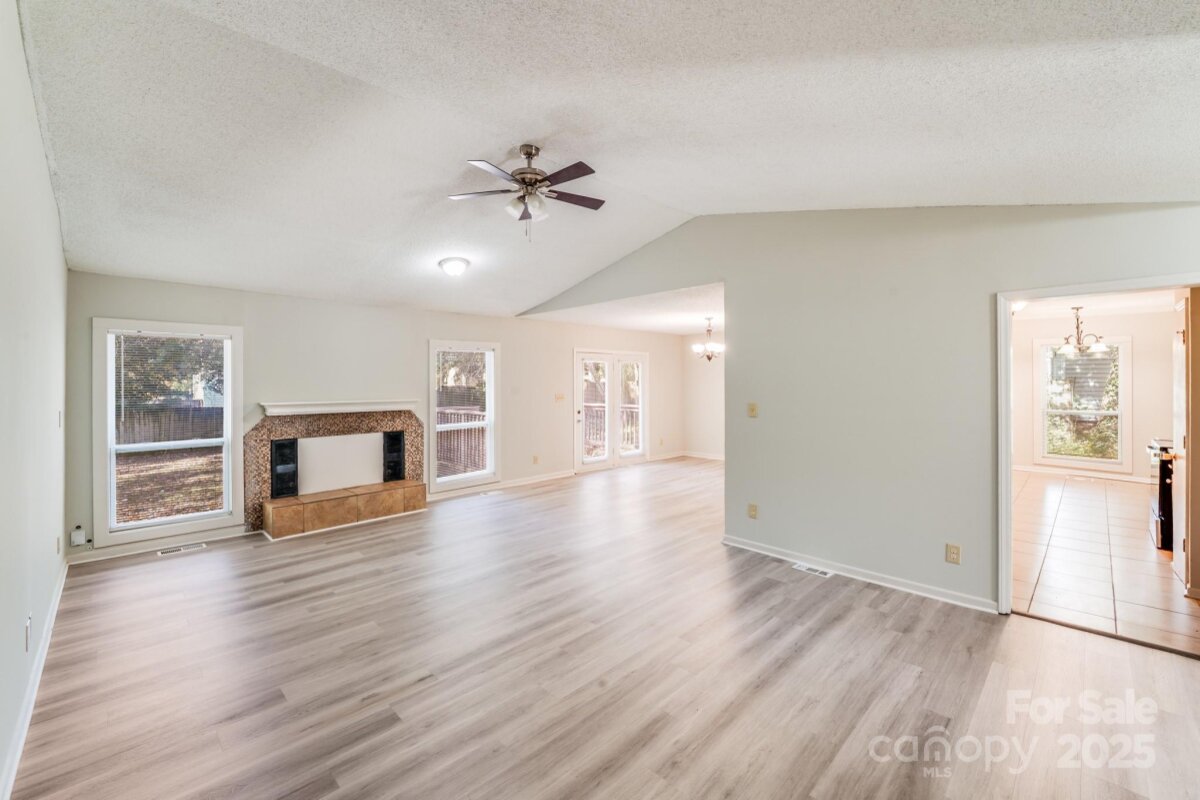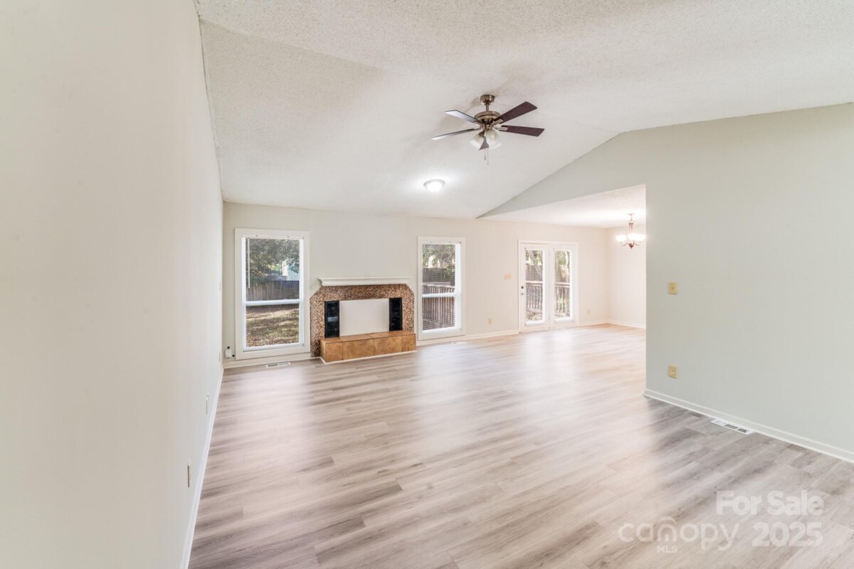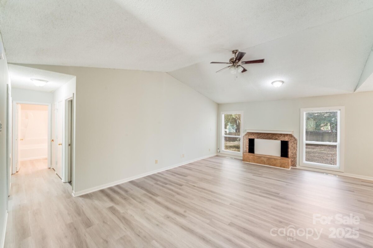Welcome to this 3-bed, 2-bath charming home tucked away in the peaceful Park Ridge community of Charlotte, NC. Designed with comfort and style in mind, this residence offers bright, open spaces, refined finishes, and a seamless connection to outdoor living. Step inside to a vaulted-ceiling living room anchored by a cozy fireplace and framed by large glass windows that fill the space with natural light. The modern kitchen is a true showpiece—featuring stainless steel appliances, granite countertops, and white cabinetry that gives a clean, elegant look. The primary suite is your private retreat, complete with a walk-in closet and an ensuite bathroom featuring a dual-vanity. Outside, enjoy a spacious yard and deck, perfect for entertaining, gardening, or simply relaxing in the quiet surroundings. Located in one of South Charlotte’s most desirable areas, this home offers easy access to shopping, dining, and top-rated schools, all while maintaining a sense of suburban tranquility. 2021 Updates: roof, HVAC, electric water heater, and kitchen got all new appliances and a full remodel.