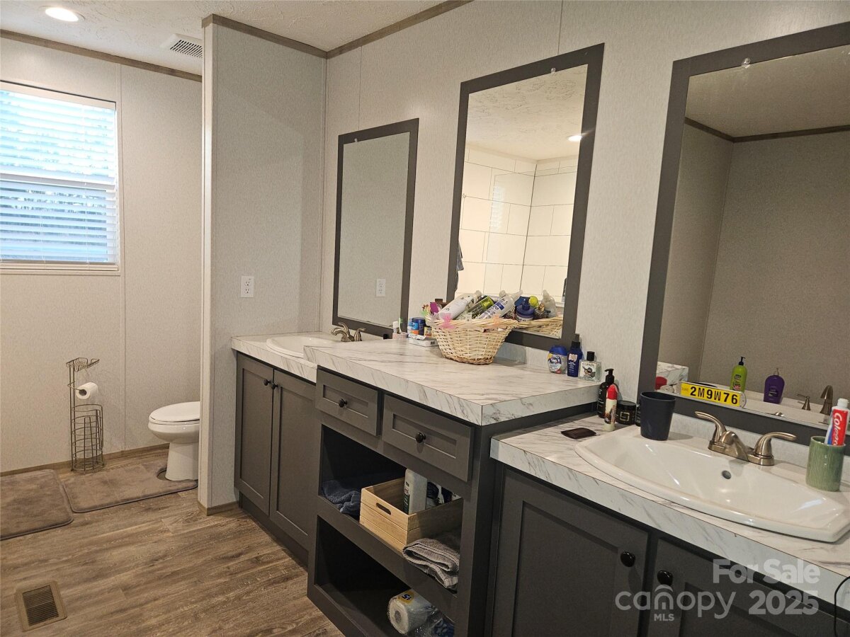 Enjoy space, privacy, and convenience in this expansive 4-bedroom, 2-bath home situated on nearly 2.5 acres across two lots. Designed with a split floor plan, the private primary ensuite is thoughtfully separated from the additional bedrooms.The primary suite features a large walk-in closet and a spacious bathroom with double vanities, a soaking tub, and a generously sized walk-in shower. The additional bedrooms are well-sized and include walk-in closets for ample storage. A versatile den with a closet offers endless possibilities—perfect for a guest room, home office, or playroom—bringing the potential total to five bedrooms. The open-concept kitchen, dining, and living area is ideal for entertaining, highlighted by a large island and pantry. Step outside to a fenced backyard, perfect for pets, outdoor gatherings, or simply enjoying the peaceful surroundings.Conveniently located near Hwy 221 and Hwy 221A, this home offers easy commuting while maintaining a sense of space and tranquility.