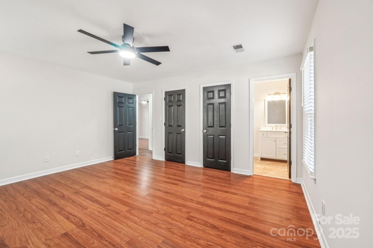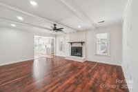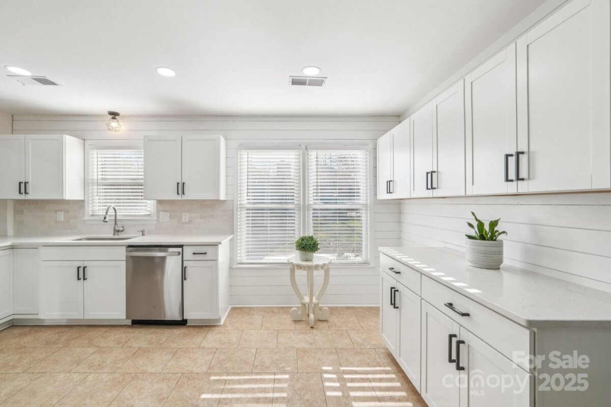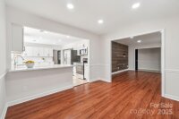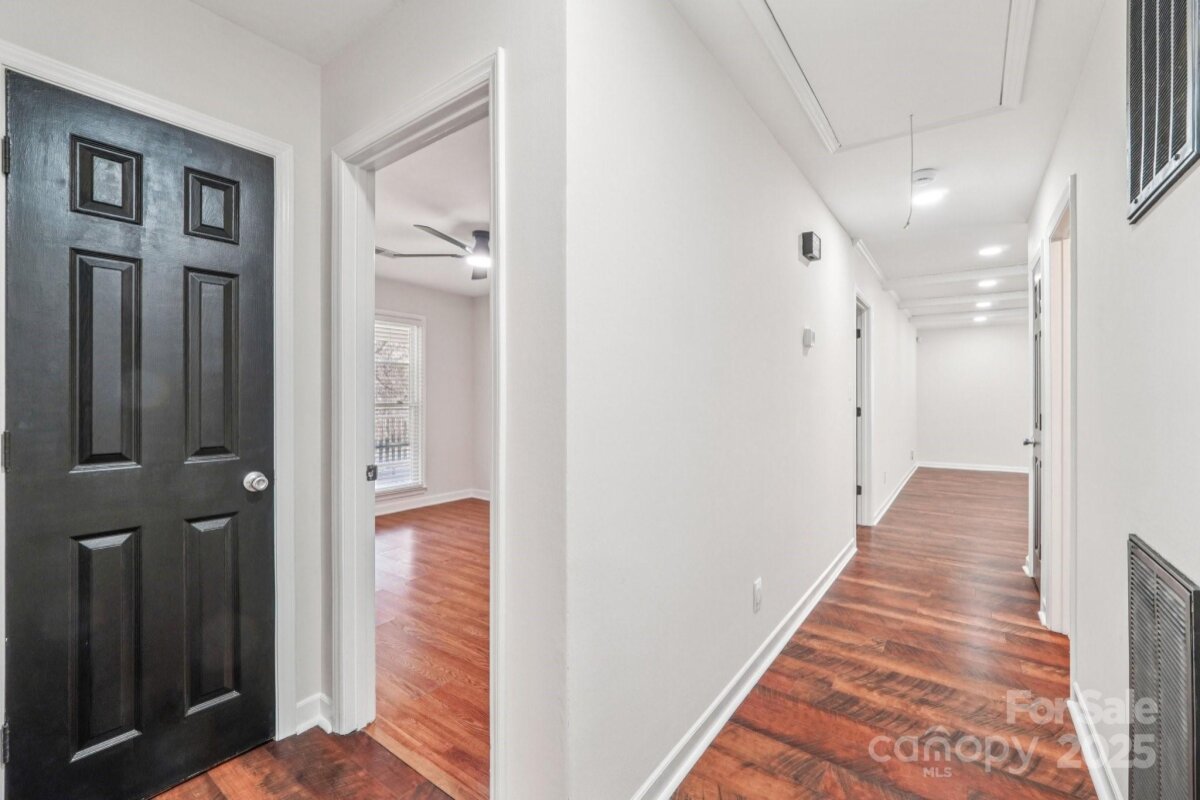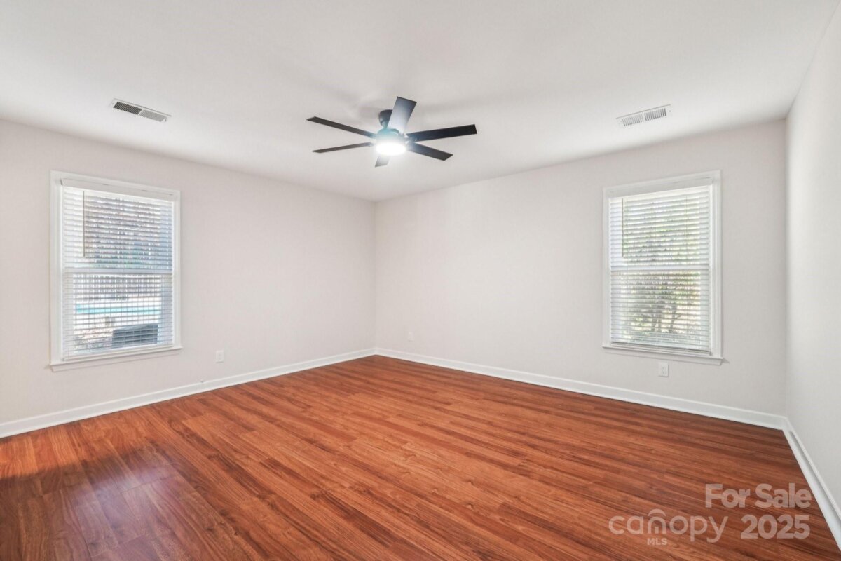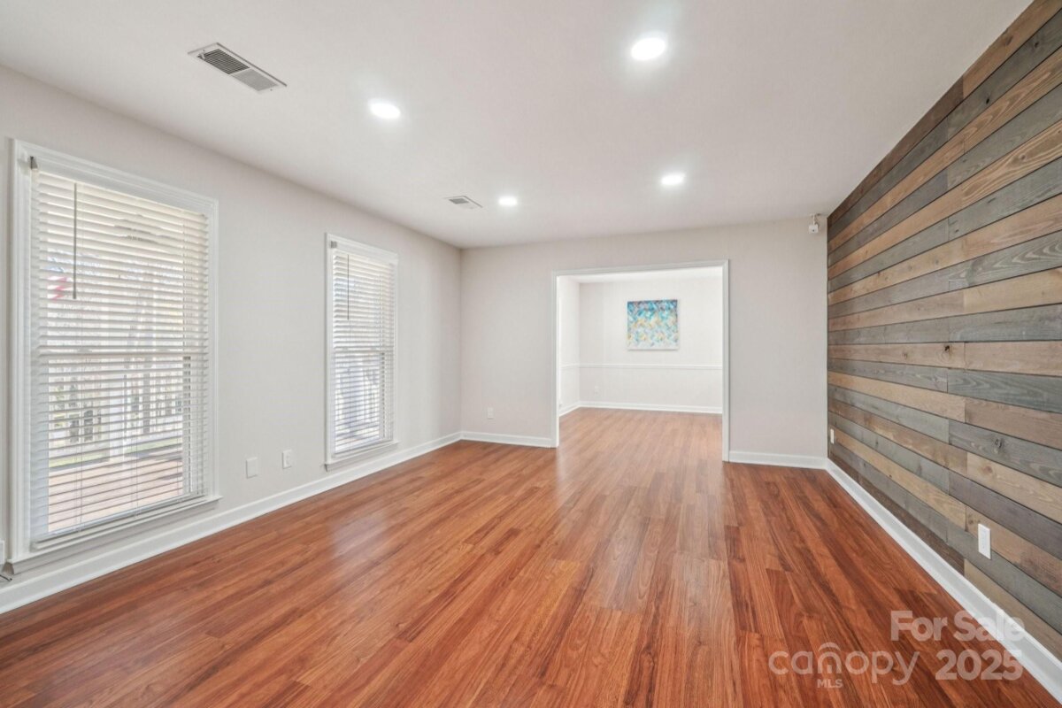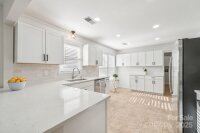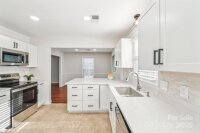 Welcome to this charming move-in ready ranch home, featuring a spacious extended front porch ideal for gathering with friends or simply enjoying the outdoors. Thoughtful details including hooks for hanging baskets, ceiling fans for added comfort, and safety gate enhance both style and functionality. Inside, the living room sits just off the foyer and showcases oversized windows that flood the space with natural light along with a warm wood accent wall. The living room flows seamlessly into the formal dining area, which is separated from the kitchen by a convenient breakfast bar. The recently upgraded kitchen impresses with new stainless-steel appliances, new gleaming Silestone countertops, new crisp white cabinetry, and charming shiplap accents and new contemporary light fixture. The open-concept layout continues into the inviting great room anchored by a beautifully painted brick fireplace and highlighted by wood beam ceiling accents - an ideal setting for relaxing or entertaining. Two generous bedrooms sit at the front of the home and share an updated full bath. The primary suite offers exceptional comfort with two spacious closets and a private ensuite bath featuring a floor-to-ceiling tiled shower. The backyard is an outdoor oasis offering an extended covered patio with a ceiling fan, and a fully fenced pool with ample space for lounge seating, outdoor dining, and sunny-day fun. All of this is just minutes from I-485, ensuring an easy and convenient commute.