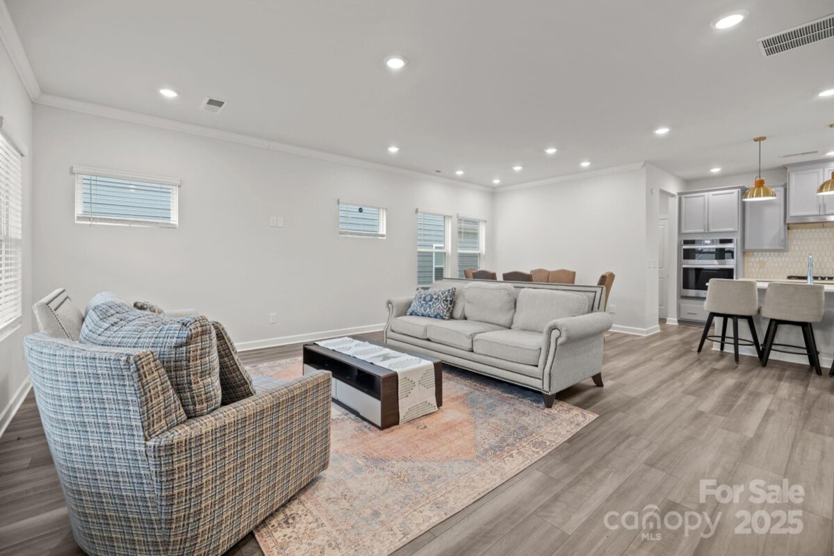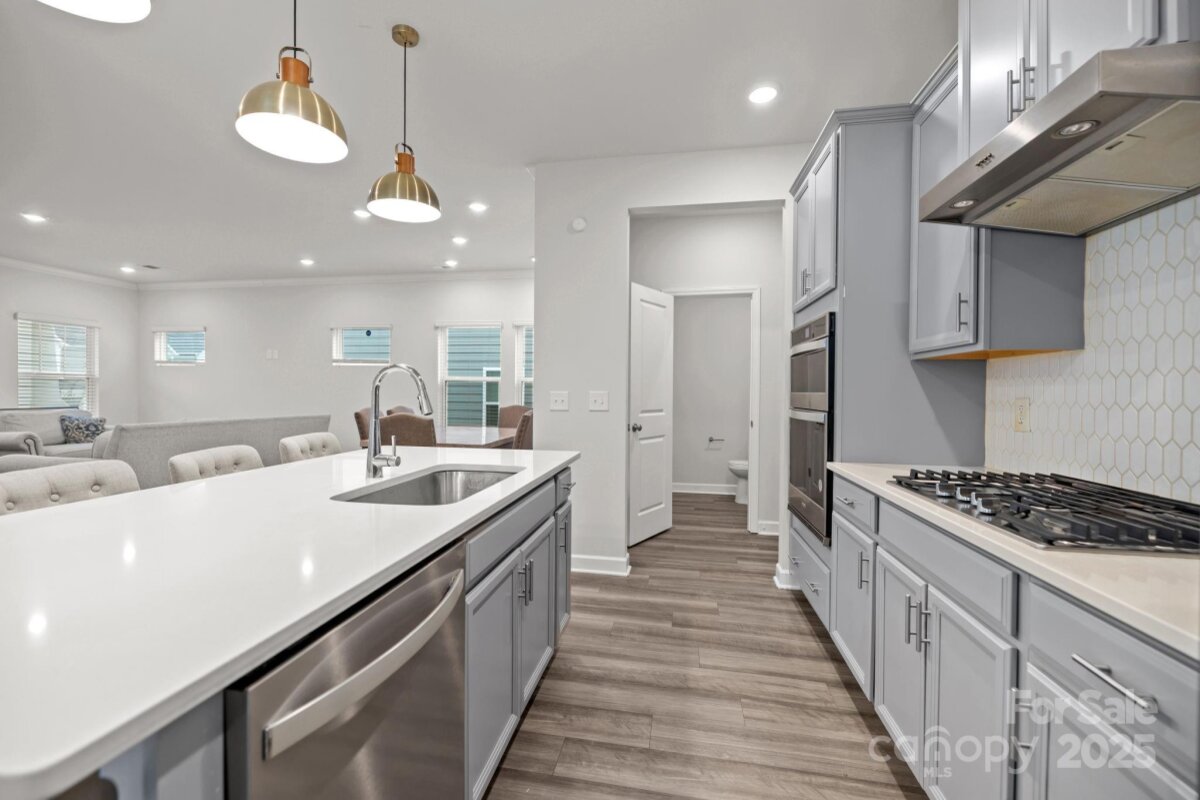 Located in Steele Creek, this nearly new, energy-efficient Meritage home offers a functional open-concept layout with an attached rear-entry garage. The main level features a bright living area that flows into the kitchen and dining space, creating an easy setup for everyday living and entertaining. The kitchen is finished with stone-tone cabinetry, ice-white quartz countertops, and EVP flooring. Upstairs, a flexible loft provides additional living space, while the primary suite offers a comfortable retreat with modern finishes and neutral carpeting. Set within the Shopton Point community, residents enjoy convenient access to Lake Wylie shopping, dining, and outdoor recreation, along with quick commutes to Uptown, Ballantyne, Fort Mill, I-485, I-85, and Charlotte Premium Outlets.