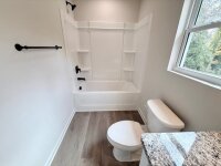 New Construction with Modern Farmhouse Style! Open and inviting, this home features LVP flooring throughout the main level and a bright white kitchen with quartz countertops, pantry, and plenty of recessed lighting. The huge living room is perfect for gatherings. Relax in the spacious primary suite with walk-in closet and a sleek bathroom with quartz, LVP flooring, and black hardware. Guest bedrooms are generous with double closets. Enjoy the rocking-chair front porch, back patio, 1-car garage, large driveway, and charming wooden shutters with stone wainscoting—style and functionality all in one!