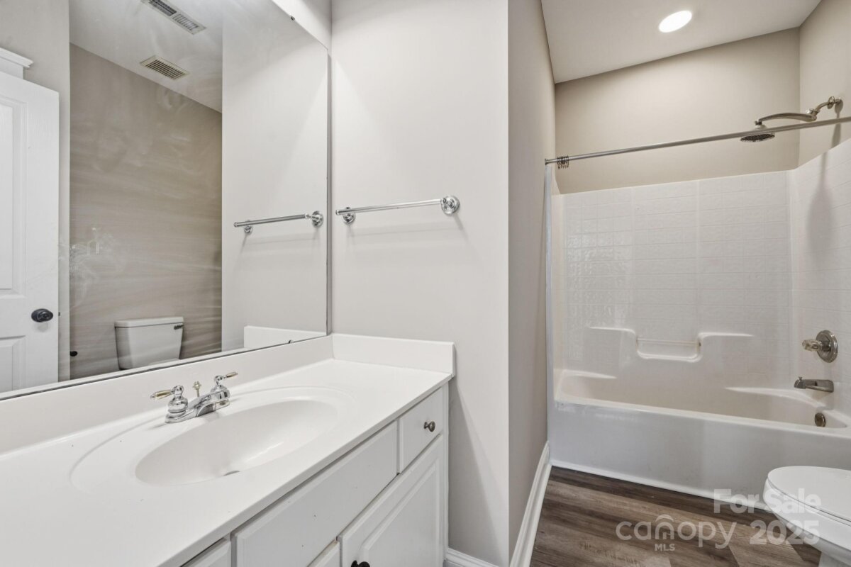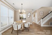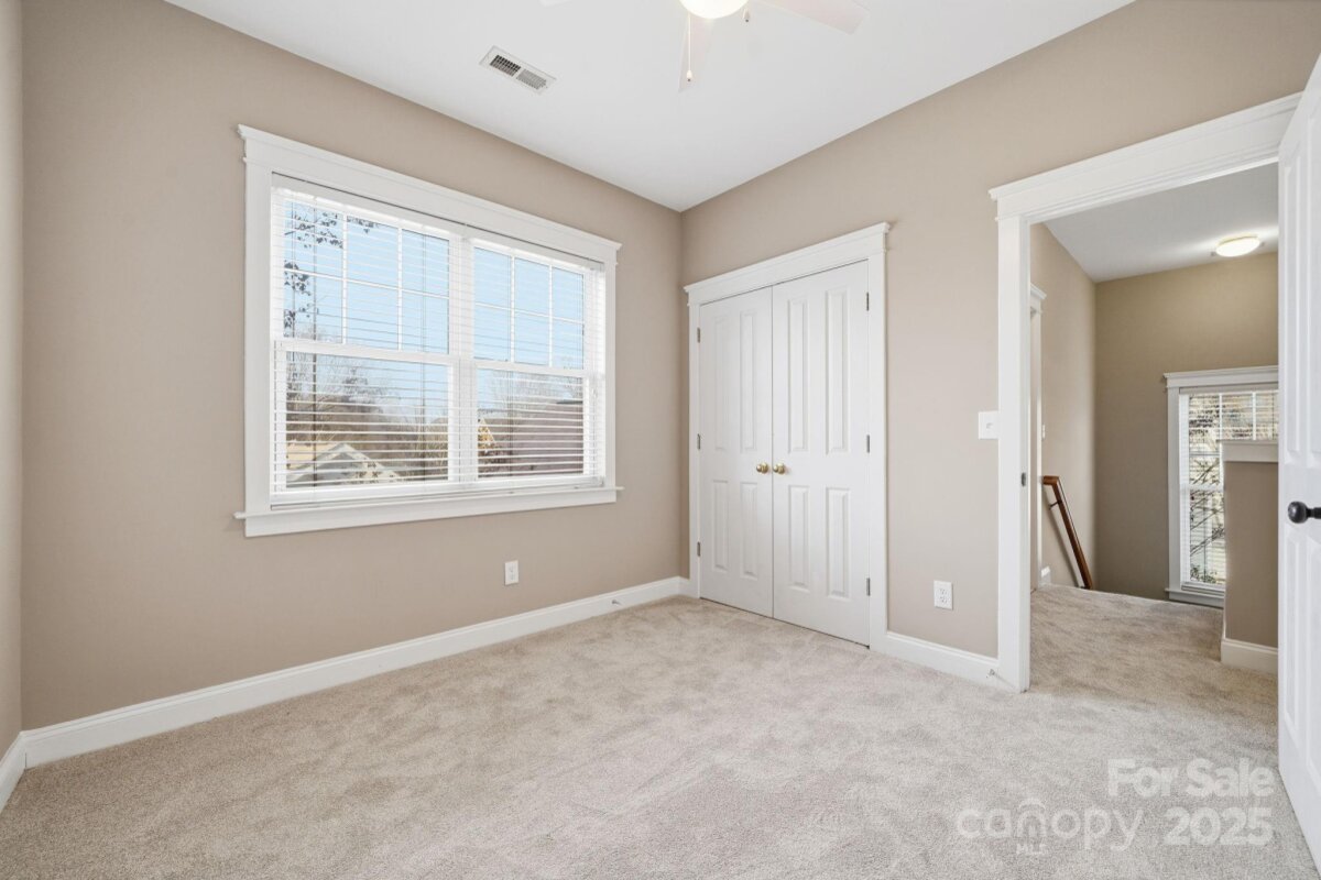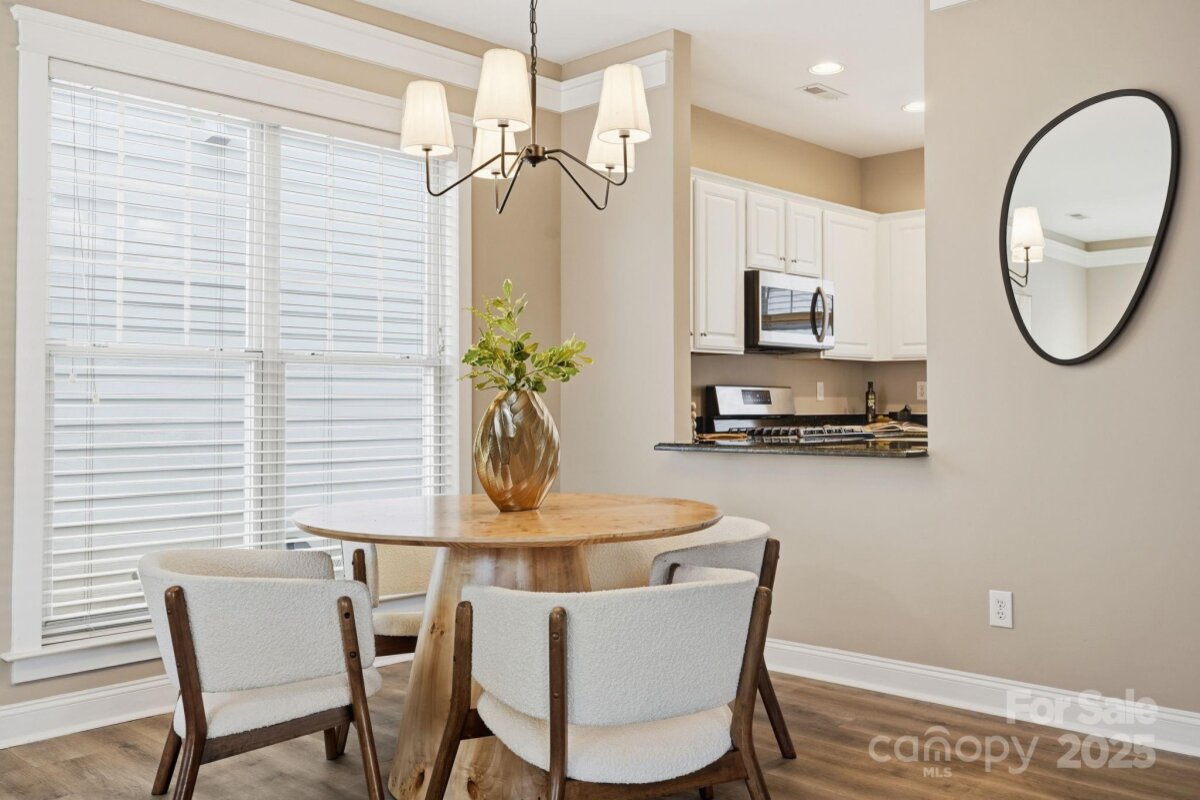 This Saussy Burbank Charleston style home is located right in the heart of Ballantyne. Ballantyne Meadows is a secret gem of Charleston style homes where southern charm meets modern convenience. Step inside from the covered rocking chair front porch into the sun soaked living space. Neutral light LVP flooring with fresh paint and beautiful heavy molding wraps the space with a custom feel. Brand new light fixtures and ceiling fans in every room. Entertain guests in the open concept living and dining space from the picture open kitchen. Enjoy evenings right outside your back patio with concrete patio surrounded by a fully fenced green space leading up to your detached garage for private parking and additional storage. The primary bedroom on the main separates you from the additional 2 bedrooms on the second level. Brand new lush carpeting, oversized laundry room, and a large storage closet and a full bath complete the upstairs space. Take comfort in knowing this home also comes with a brand new HVAC and hot water heater installed in 2025! Take advantage of all the new shopping, dining, and entertainment experiences at the brand new Ballantyne Bowl. Everything you need is just minutes away including easy access to 485! The perfect home is waiting for you, come see for yourself!