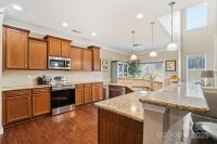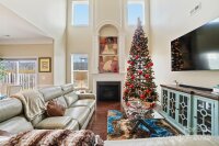 Beautiful two-story, move-in-ready home with a charming front porch. Laminate wood flooring flows through the main living areas, complemented by fresh two-tone interior paint. The foyer opens to a formal dining room and a stunning living room featuring soaring ceilings and a cozy fireplace. The spacious kitchen offers warm stained cabinetry with ample storage, granite countertops, a breakfast bar, subway tile backsplash, and stainless steel appliances. The split master floor plan includes a downstairs primary suite with a tray ceiling, walk-in closet, and private en-suite bath. Upstairs features a versatile loft and new carpeting in all bedrooms. Enjoy the fenced backyard, perfect for outdoor living.