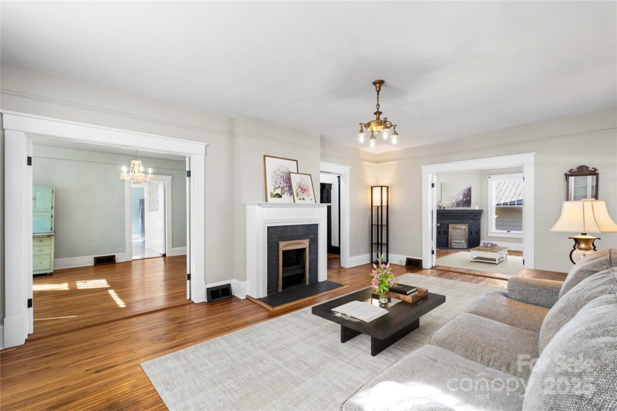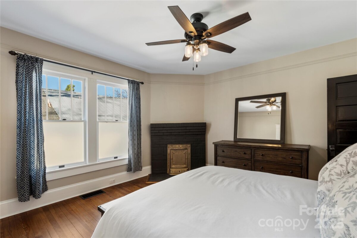 Charming 1920s 1.5-level home offering 4 bedrooms and 2.5 bathrooms—with no HOA! Fully renovated in 2024 with craftsmanship that honors the home’s historic character, including a rewired original 1920s light fixture in the front room. The covered front porch opens to an inviting floor plan featuring beautiful hardwood floors and a bright living area with large windows and a cozy fireplace for ambiance (seller was told they were non functional when they purchased and will be sold as-is). The spacious kitchen provides abundant cabinetry, a dedicated pantry, stainless steel appliances, quartzite countertops, and ample prep space—perfect for cooking and entertaining. The main-level primary suite offers added comfort with its own fireplace (non-functional; sold as-is), a custom-tiled bathroom, and a stylish vanity. Upstairs, the additional rooms provide flexibility for guests, a home office, or hobbies. Enjoy outdoor living in the large fenced backyard with a storage shed—ideal for gardening, play, or gatherings. A wonderful blend of historic charm, modern convenience, and freedom with no HOA restrictions.