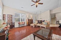 Discover this stunning one-owner ranch home, complete with a bonus room, situated in the heart of Pineville. Upon arrival, you are welcomed by a charming rocking chair front porch. The main living area boasts prefinished hardwood flooring throughout, complemented by vaulted ceilings in both the great room and kitchen, creating an inviting open floor plan. The spacious kitchen is equipped with a pantry and ample counter space, ideal for culinary enthusiasts. The expansive owner's retreat features a luxurious bathroom, complete with dual vanities, a garden tub, a separate shower, and a walk-in closet. Upstairs features a perfect hideaway for guests, in-laws, or teenagers, equipped with its own full bath and closet. One of the highlights of this home is the screened porch, which overlooks a beautifully landscaped, fenced yard—perfect for relaxation. The community offers amenities such as an inground pool, clubhouse, and playground, all while being conveniently located just minutes from shopping and restaurants.