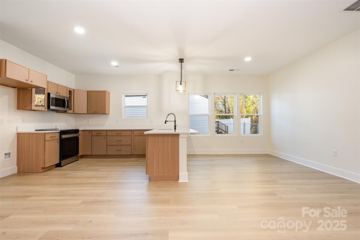 Welcome to this beautifully crafted modern ranch offering the perfect blend of style, comfort, and functionality. Step inside to an open, sun-filled layout featuring a spacious living area, warm luxury vinyl plank flooring, and wide windows that bring in tons of natural light. The sleek kitchen boasts modern cabinetry, quartz countertops, and upgraded fixtures—ideal for both everyday living and entertaining. The home includes a generous primary suite with a luxurious spa-inspired bathroom, complete with dual vanities and a stunning walk-in tiled shower. You’ll love the oversized walk-in closet with built-in shelving for effortless organization. Enjoy outdoor living on the covered back patio perfect for relaxing or hosting guests. With thoughtful details throughout, modern design, and a welcoming feel, this home is truly move-in ready.