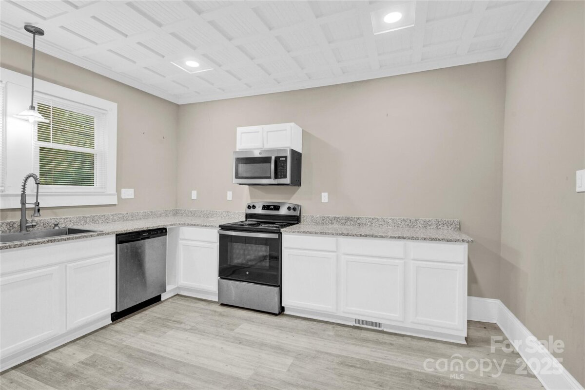 Welcome to 1241 S Lafayette St, a fully renovated 3 bed, 2 bath home blending 1920s character with modern upgrades throughout. Sitting on a desirable corner lot just minutes from downtown Shelby, this property features a brand-new interior with updated flooring, fresh paint, and a bright open layout. Major improvements include a new roof (2022) and new HVAC (2021) for peace of mind. The spacious kitchen offers modern style with updated cabinets and finishes, and both bathrooms have been completely redone with updated tile and high-quality finishes. All three bedrooms are generously sized, and the floorplan offers excellent natural light throughout. Outside, the corner lot provides easy parking, yard space, and curb appeal — ideal for outdoor living or future entertaining. Conveniently located close to Hwy 74, schools, shopping, and downtown amenities. Perfect for first-time buyers, downsizers, or investors — move-in ready with all the major updates already done.