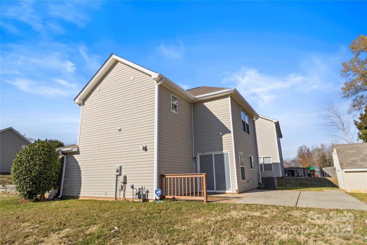 Welcome to this beautifully maintained 3-bedroom, 2.5-bathroom home situated on a desirable corner lot in Charlotte. With fresh updates inside and out, this move-in-ready property offers exceptional comfort, convenience, and value. The main level features a welcoming living room, a dedicated dining area, and a functional kitchen that opens directly to the back patio—perfect for morning coffee or outdoor dining. The home also includes an attached one-car garage with additional parking available in the extended driveway, offering ample space for guests or multiple vehicles. Upstairs, you’ll find the laundry room—ideally located near all three bedrooms—and the washer and dryer convey with the home. The upper level also includes three spacious bedrooms, including a comfortable primary suite, along with two full bathrooms designed for privacy and convenience. This home has been thoughtfully updated with a new roof in 2024, new HVAC system in 2021, and a new hot water heater in 2022. The refrigerator, stove, microwave, and dishwasher are only 3 years old, offering modern efficiency and peace of mind. Freshly pressure-washed and newly painted, the exterior shines with curb appeal. The property also features a storage building that conveys with the sale, perfect for tools, equipment, or hobby space. A security system with cameras is already installed for added comfort and safety. With its numerous upgrades, functional layout, and attractive corner-lot setting, this home offers an excellent opportunity in a sought-after Charlotte location.