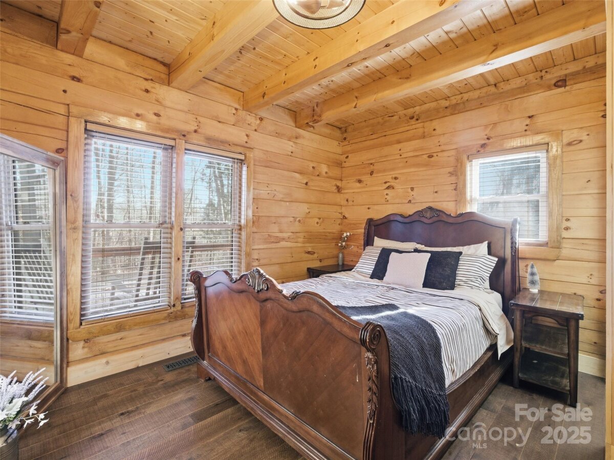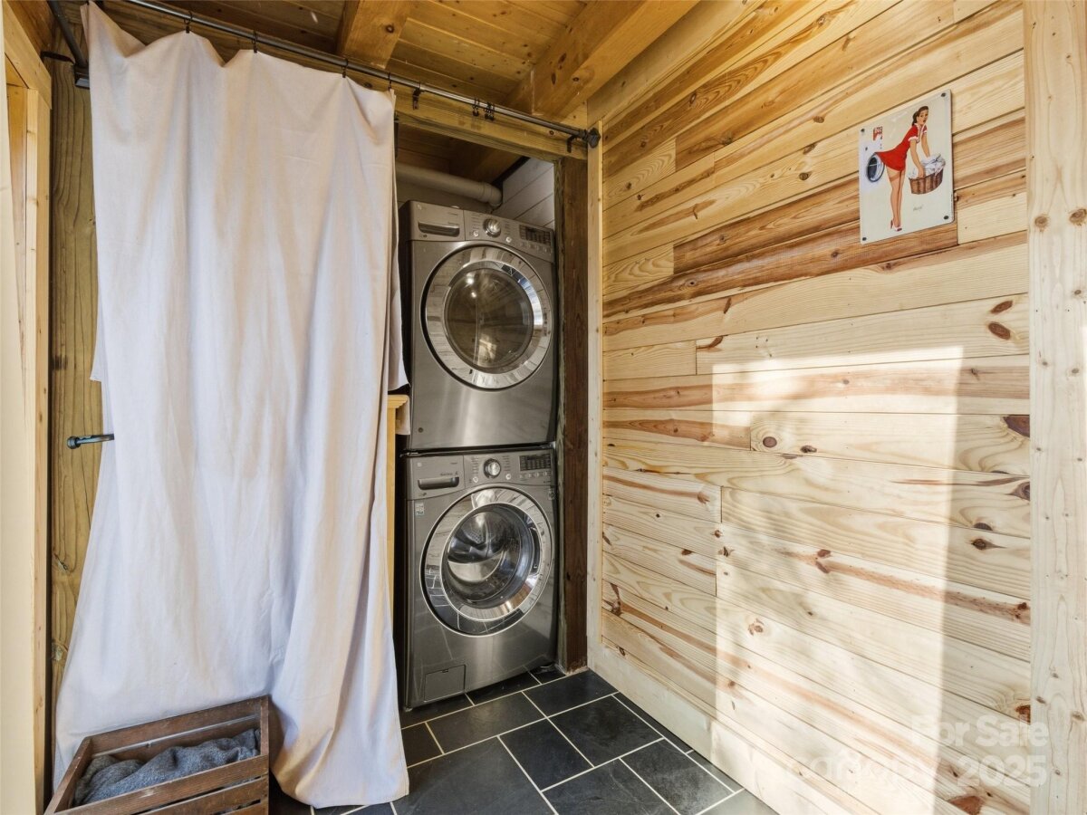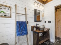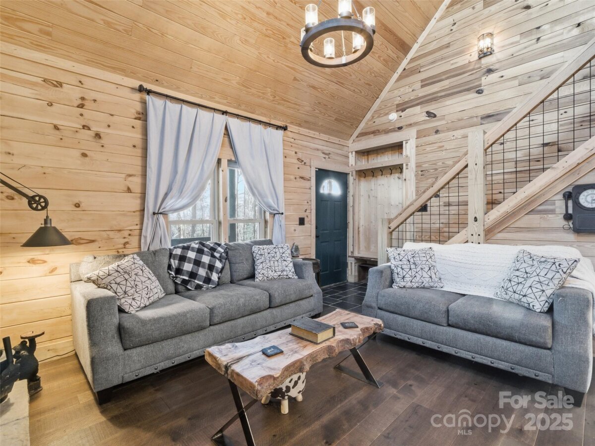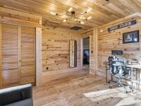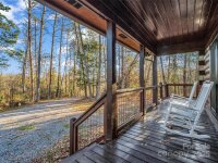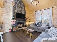 This fully renovated and furnished 2BR/2BA, 1.5-story log cabin showcases an exceptional blend of rustic character and upscale luxury on a private, wooded 2-acre lot. Rich slate, circular-sawn hardwood, and pine floors highlight the cabin’s timeless charm, while the great room’s vaulted ceilings and striking floor-to-ceiling stone wood-burning fireplace create a warm, dramatic centerpiece. The beautifully updated eat-in kitchen features leathered granite counters, stainless appliances, a pot filler, and thoughtful custom touches that elevate everyday living. A cozy loft adds extra versatility, complementing two inviting bedrooms and two updated baths, including one with a relaxing spa-like soaker tub with shower. Special handcrafted finishes and a durable metal roof enhance both style and longevity. A large deck and welcoming front porch with rocking chairs and a swing provide serene outdoor living, making this turn-key retreat ideal for a luxurious rustic getaway or short-term rental.