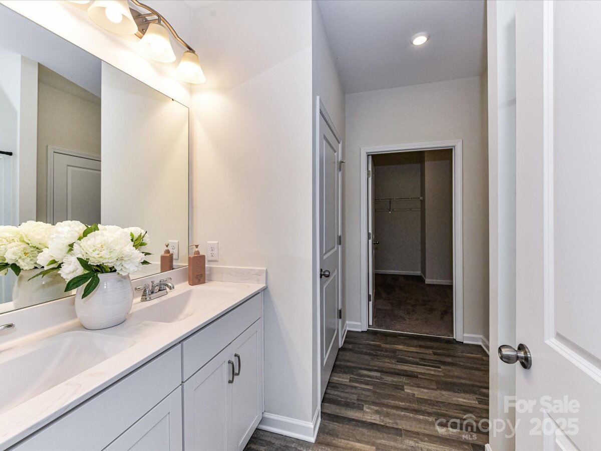 Discover a home where comfort and craftsmanship come together in a truly captivating way. This 3-bedroom, 2.5-bath two-story offers standout features at every turn—beginning with a charming front porch and covered balcony that set the stage for relaxed outdoor living. Inside, an open-concept design flows seamlessly into a stunning kitchen equipped with a gas range, quartz countertops, a walk-in pantry, and a timeless tile backsplash—an ideal setting for everyday meals or inspired creations. The main-level primary suite feels like a private retreat, featuring a generous walk-in closet and a spa-like bath with dual vanities. Upstairs, two spacious bedrooms with walk-in closets provide versatility for guests, work, or play. Perfectly positioned just one mile from Locust Park and moments from restaurants and shops, this home blends peaceful living with vibrant convenience. A place where thoughtful details shine—and where the everyday feels just a little more magical.