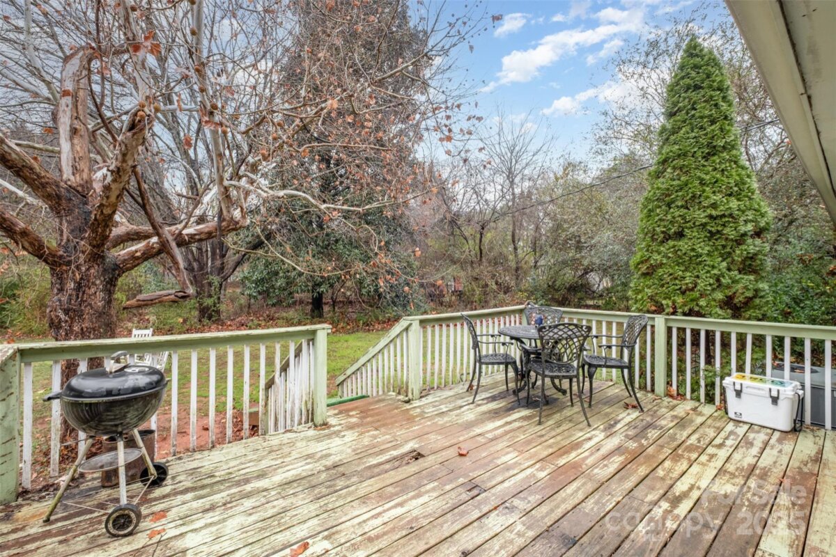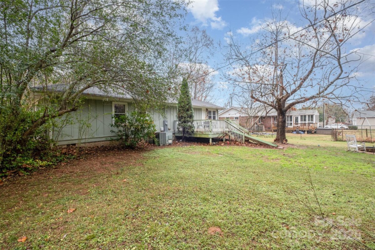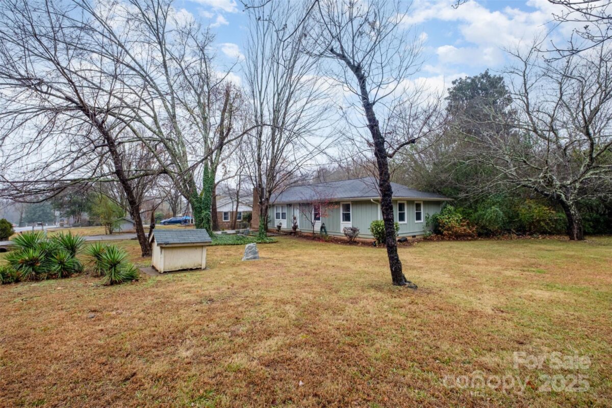 Enjoy living in a peaceful community just outside I-485 providing you access in and around Charlotte while still allowing you to get away. This ranch style home sits on almost 1/2 acre of private property including a fully fenced in backyard and stunning mature trees in the front. Inside you'll find a living room filled with natural light. Wood plank flooring flows throughout entire home - no carpet! Spacious dining room is just off the side of the kitchen which has bright white cabinets, tan granite counters & decorative tile backsplash. Primary bedroom has attached full bath with newer stand-up tile shower. 2 additional bedrooms provide an option for a home office space plus a full bath great for family or friends. Enjoy hosting everyone on the large back deck that overlooks the private yard currently with small firepit area and the opportunity to create your own outdoor entertainment dream!