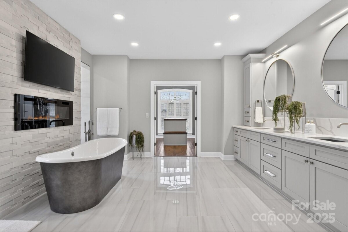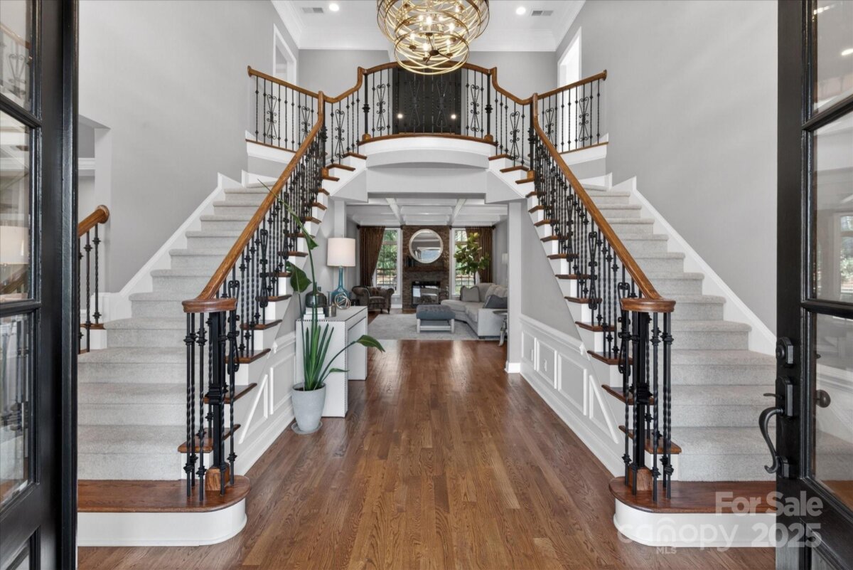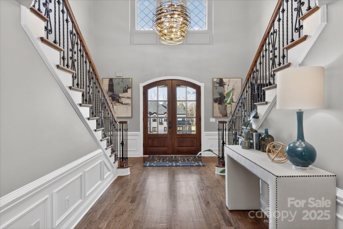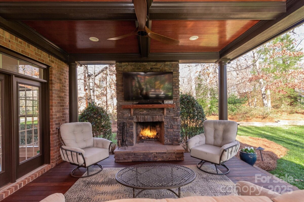 Exquisite custom home loaded with stylish updates! The main-level primary suite is a showstopper with its newly renovated spa bath with an oversized walk-in shower, gorgeous free-standing tub nestled beside a glowing fireplace, and an unbelievable tailored closet. Stunning kitchen with quartz counters and a cozy keeping room flows into the great room with a beautiful stone fireplace. A grand dual staircase and gleaming hardwood floors provide a warm and grand welcome into the foyer. Step outside to an incredible covered porch featuring a wood-burning fireplace and outdoor kitchen area with built-in grill and smoker, overlooking a private backyard with firepit. Upstairs features a custom-finished billiard room with floating wood floors and a spacious bonus room with brand new carpet. Home boasts accented walls and ceilings, arched windows with lots of natural light, beautiful hardwoods on main level and new carpet upstairs. Located in sought-after Weddington school district in a charming neighborhood close to every day conveniences.